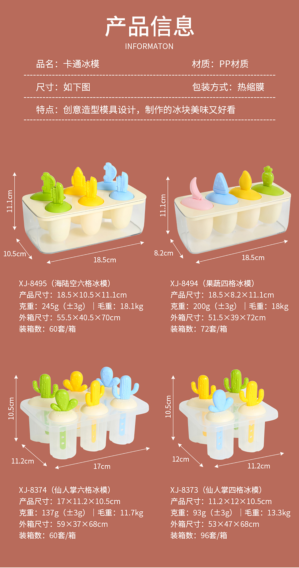 仙人掌四格/六格/果蔬四格/海陸空六格冰模
