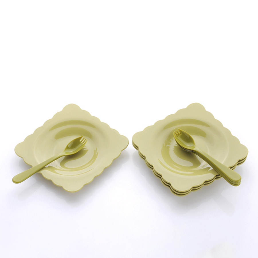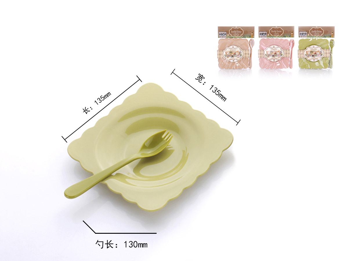 得力熊歐式小號(hào)花邊正方餐盤(4pcs)( 配4pcs叉匙)