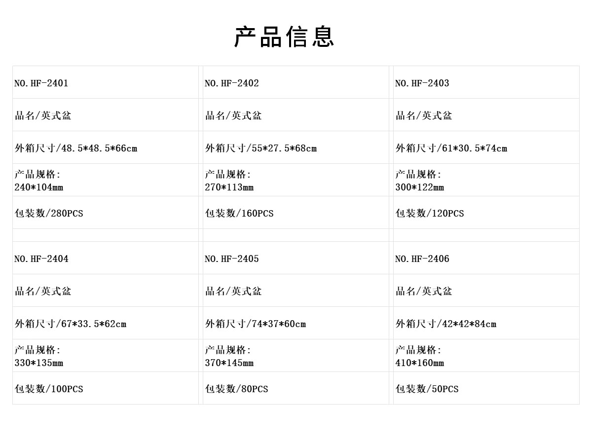 CartonSize(cm): 48.5*48.5*6655*27.5*6861*30.5*7467*33.5*6274*37*6042*42*84 47*47*66