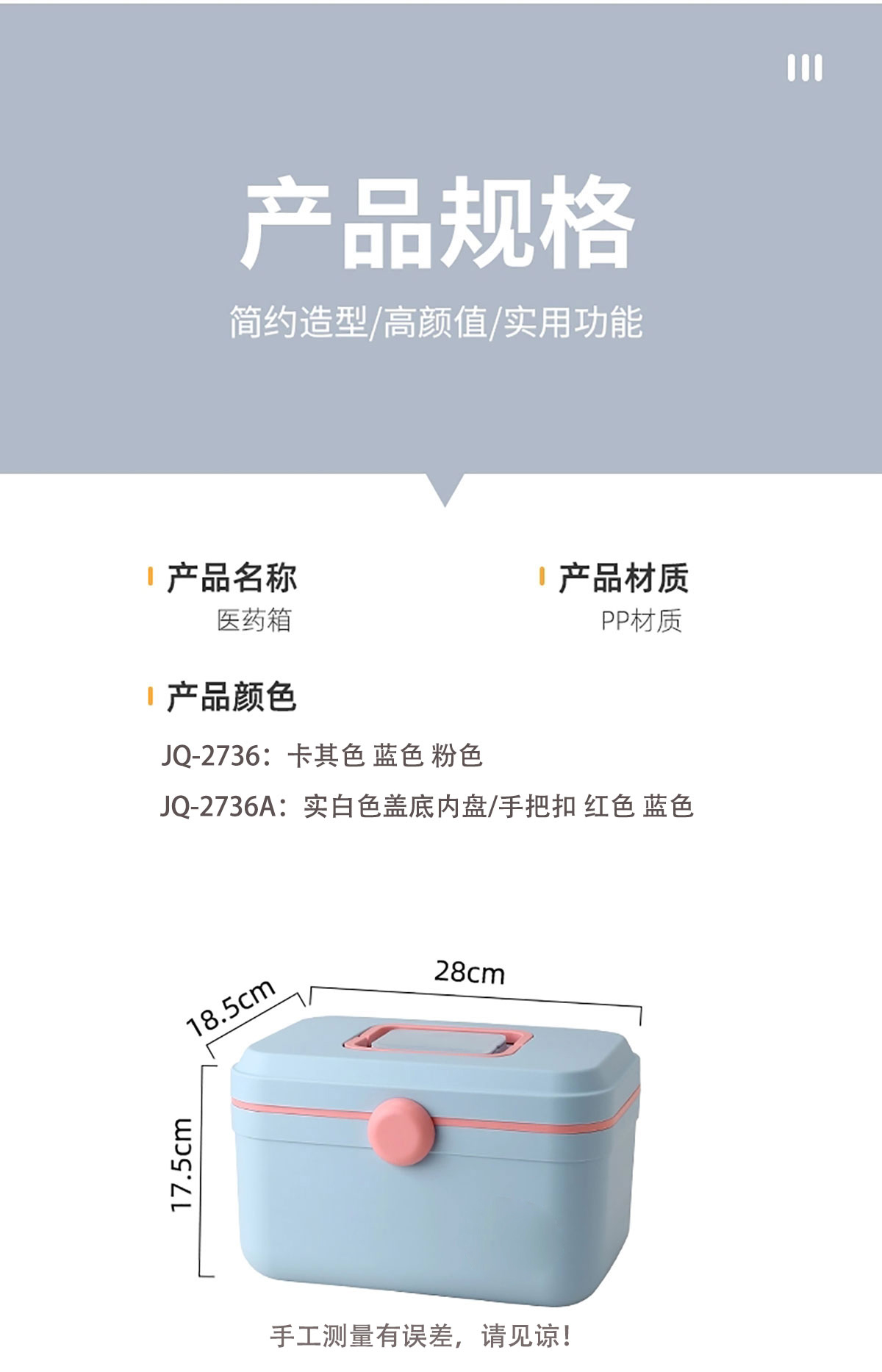 Remarks:JQ-2736:卡其色 粉色 藍色 JQ-2736A:實白色蓋底內盤/手把扣 紅色 藍色