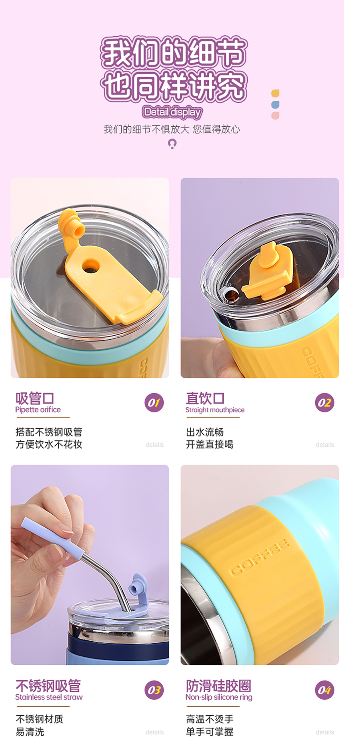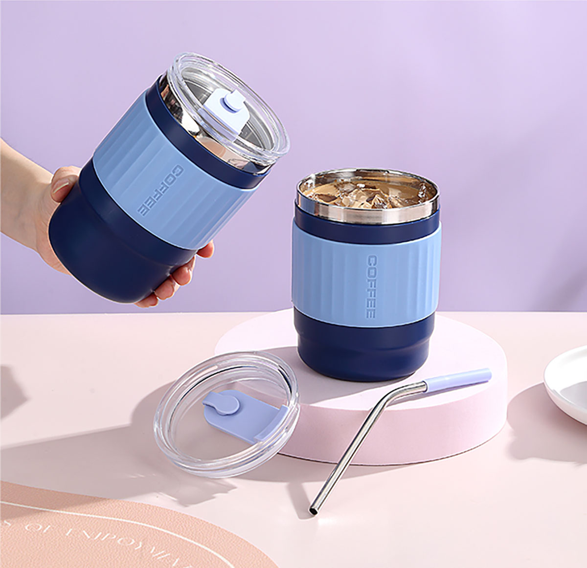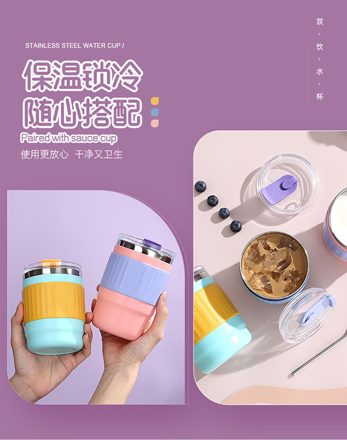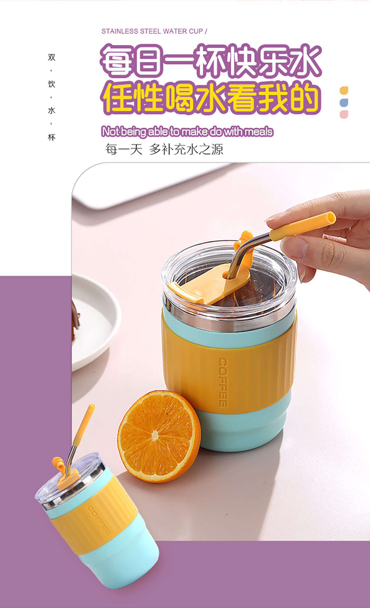 400ml/500ml時尚防燙雙飲水杯(配不銹鋼吸管)