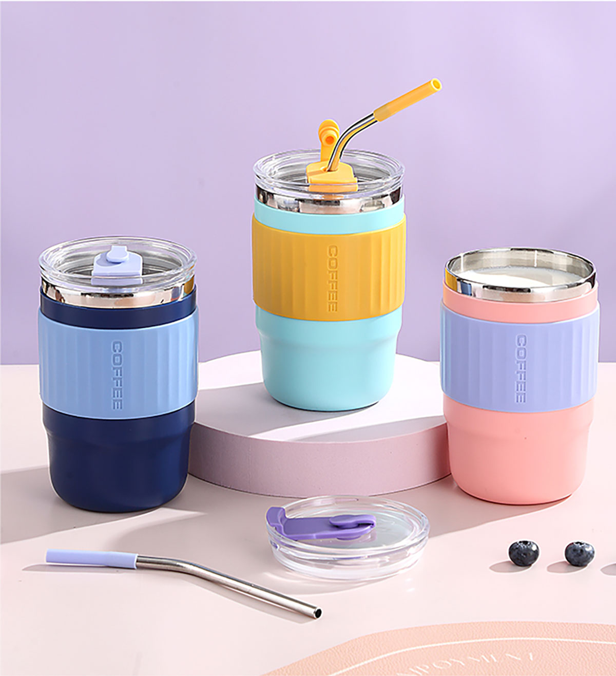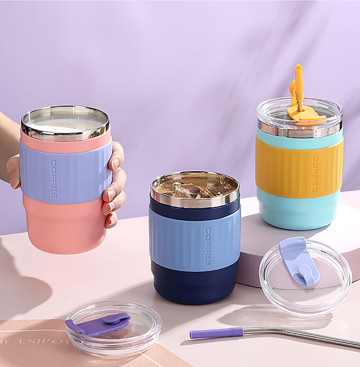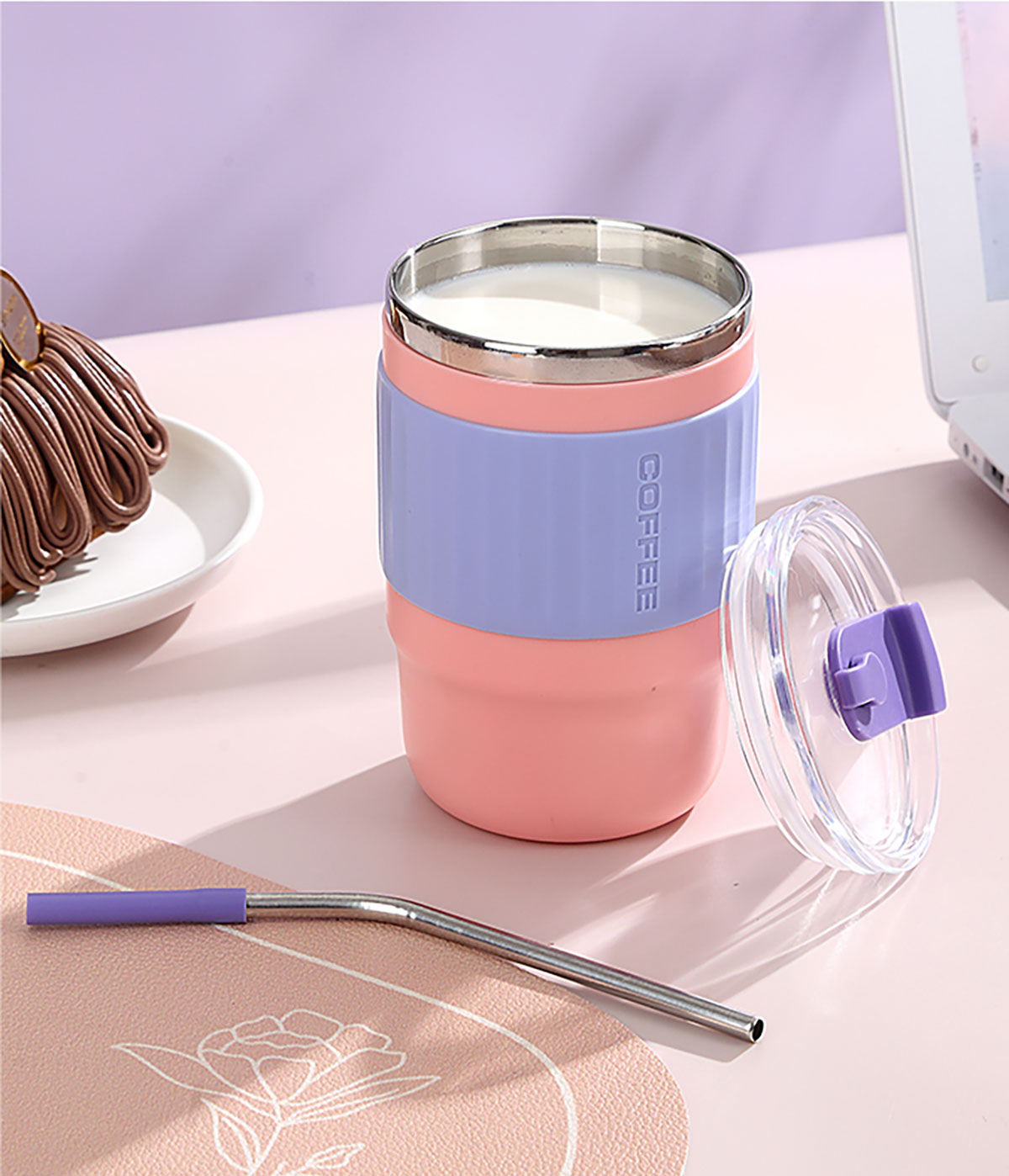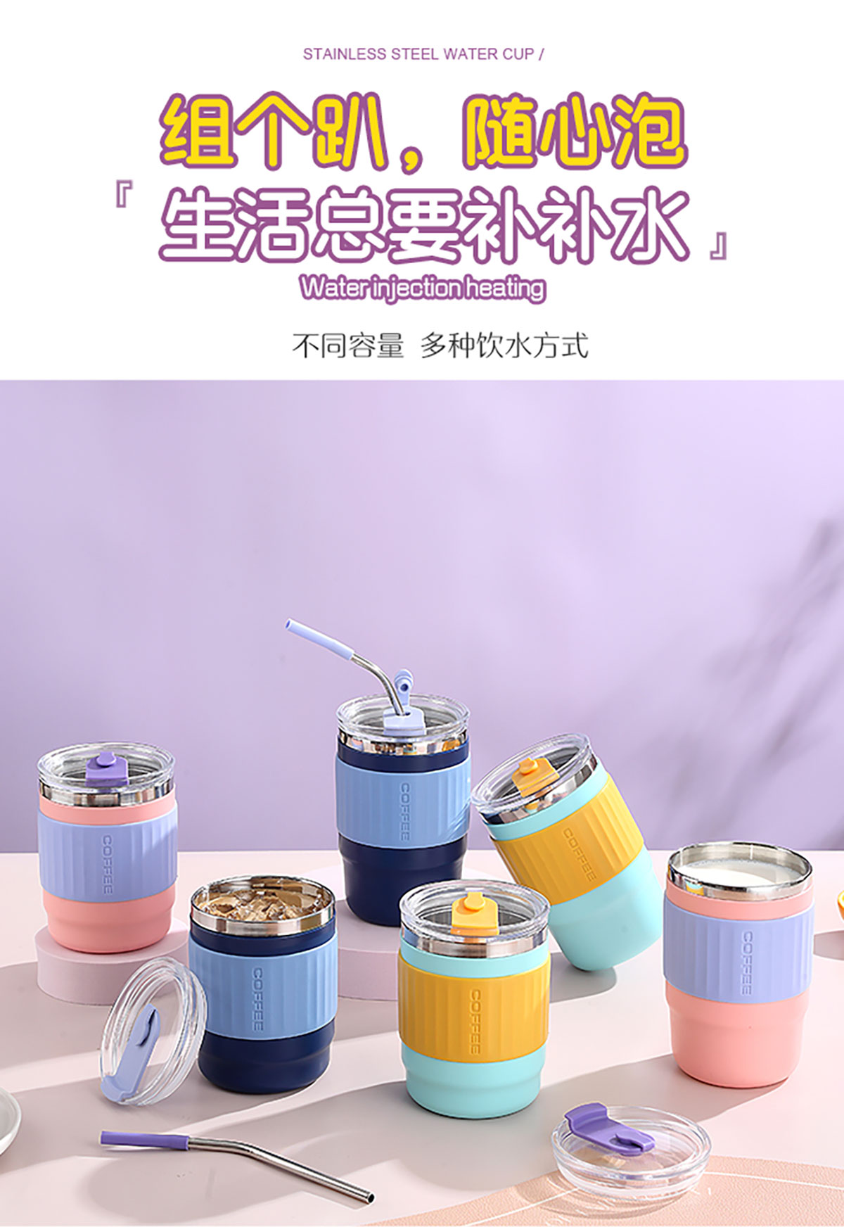 400ml/500ml時尚防燙雙飲水杯(配不銹鋼吸管)
