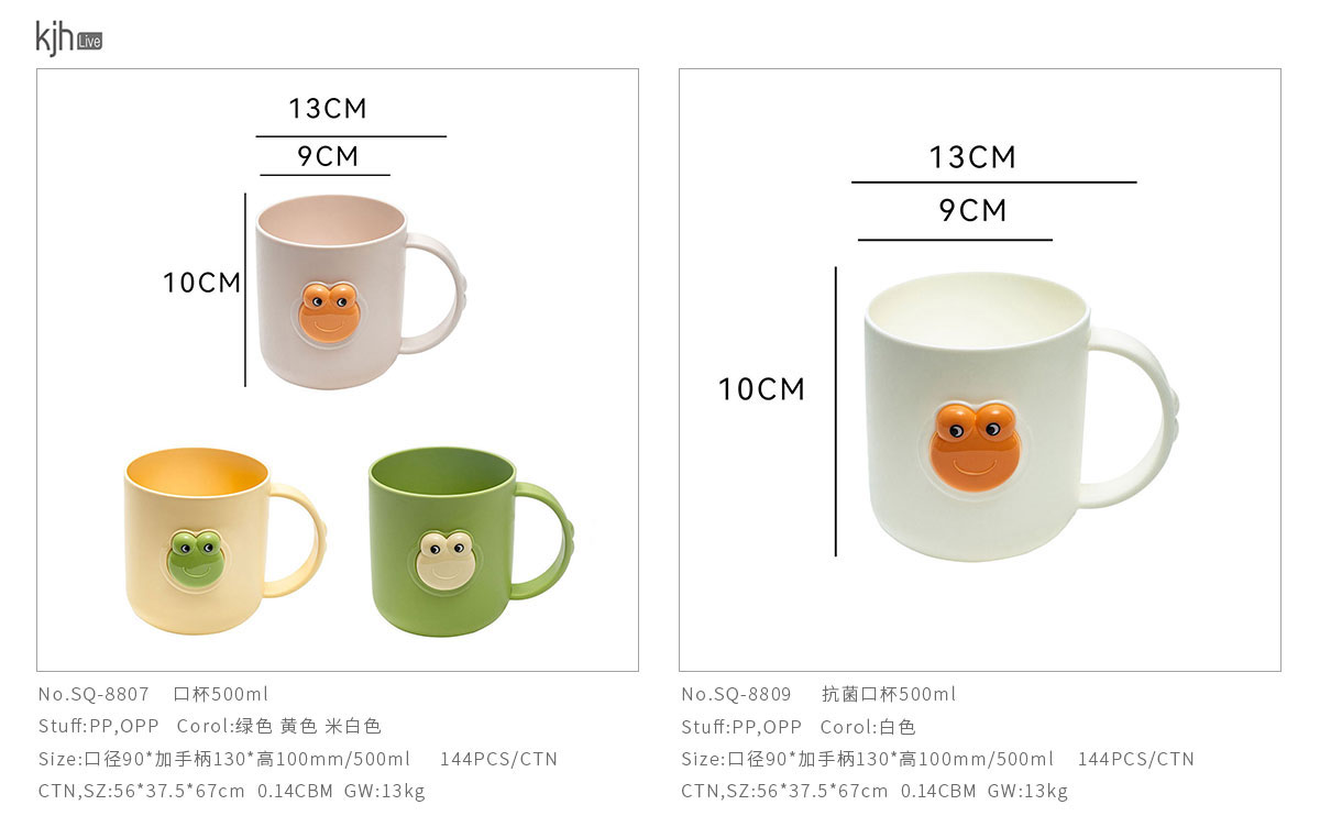 Size: SQ-8807(口杯):口徑90*加手柄130*高100mm/500ml