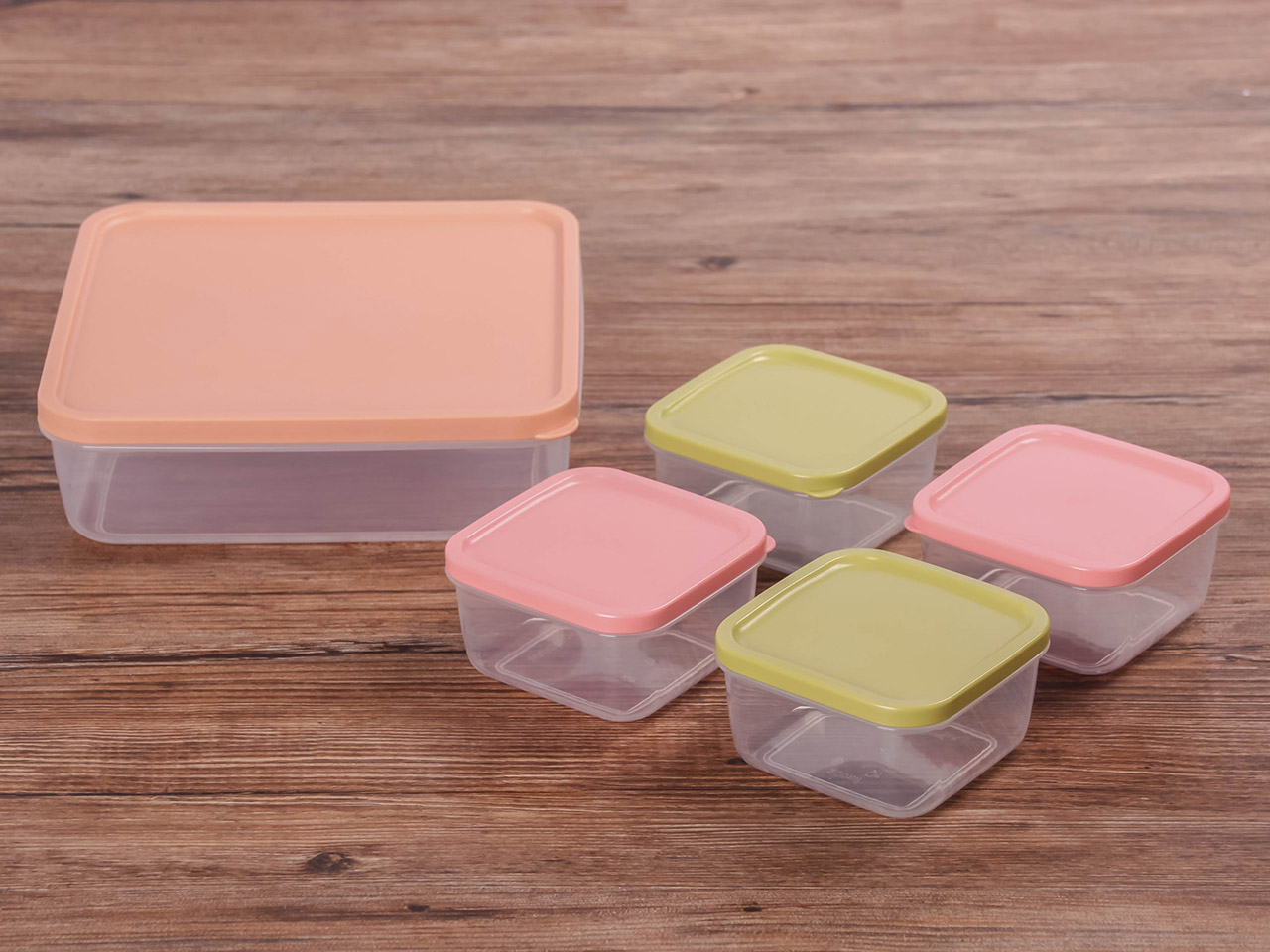 得力熊正方5件套疊疊保鮮盒(混色)