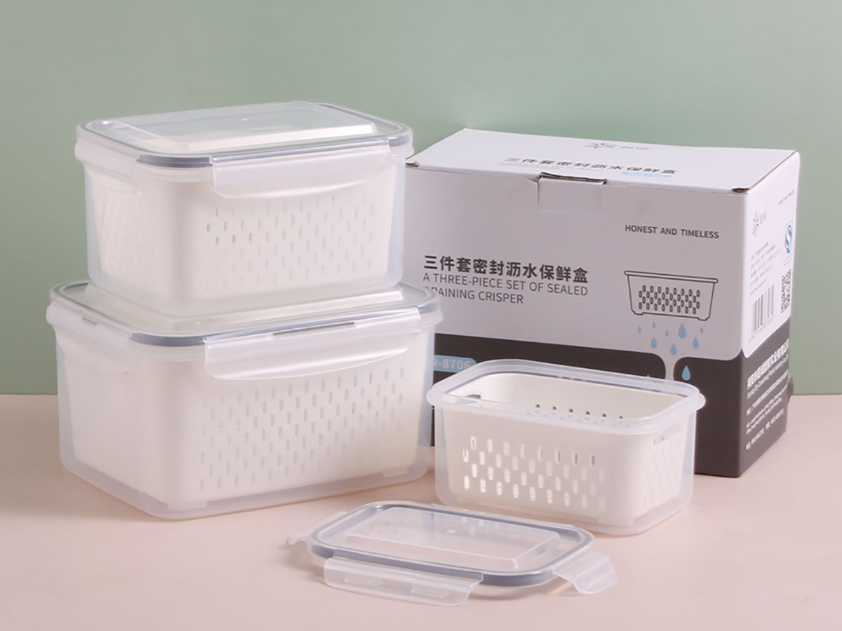 三件套密封瀝水保鮮盒(長(zhǎng)方形)