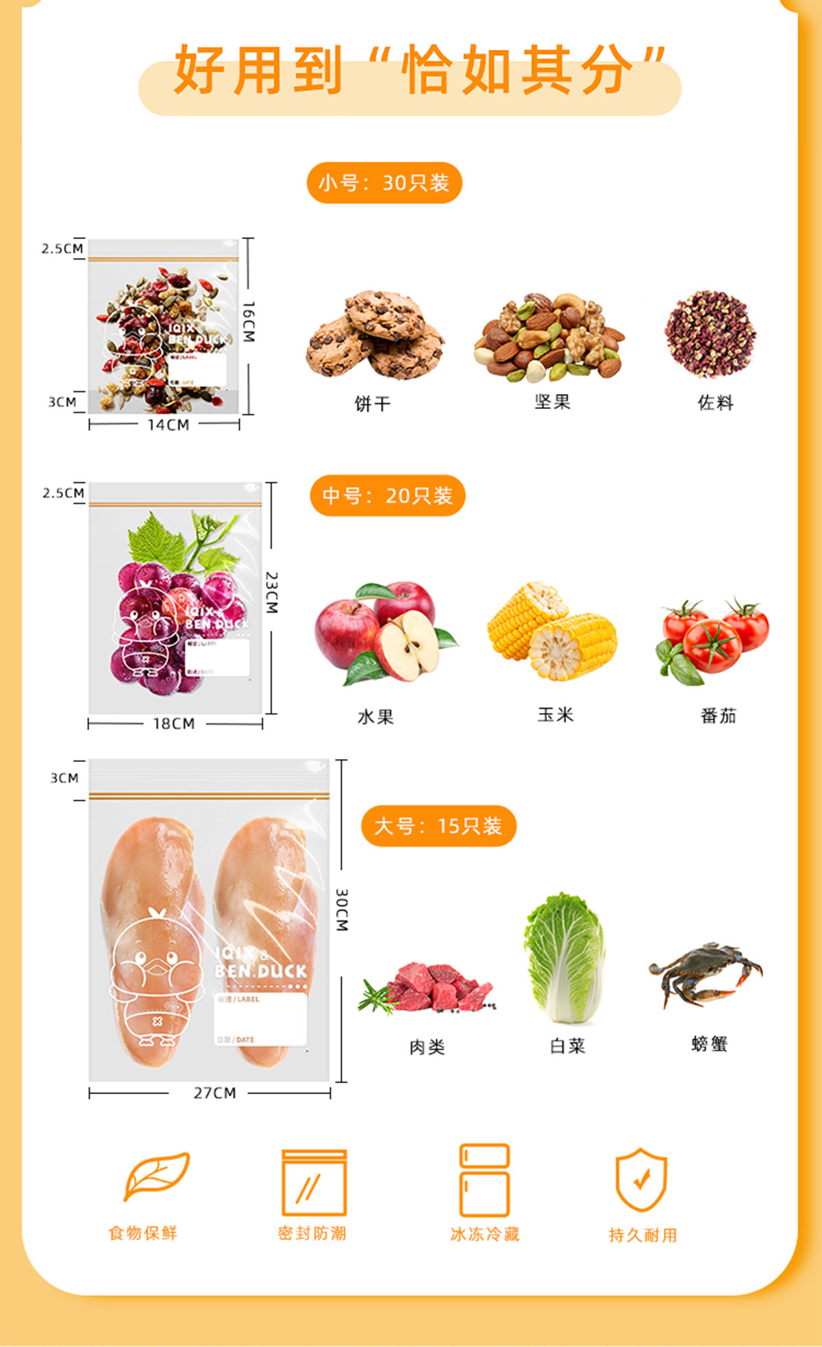 加厚雙筋保鮮密封袋(小號30個(gè)裝/中號20個(gè)裝/大號15個(gè)裝)