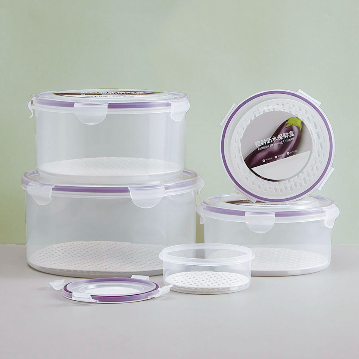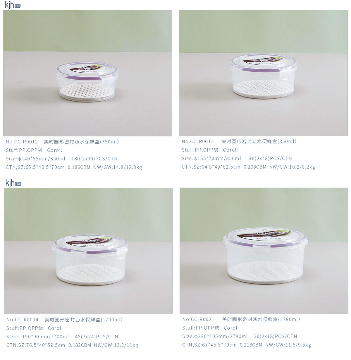 美時(shí)圓形密封瀝水保鮮盒(350ml/850ml/1700ml/2780ml/4220ml)
