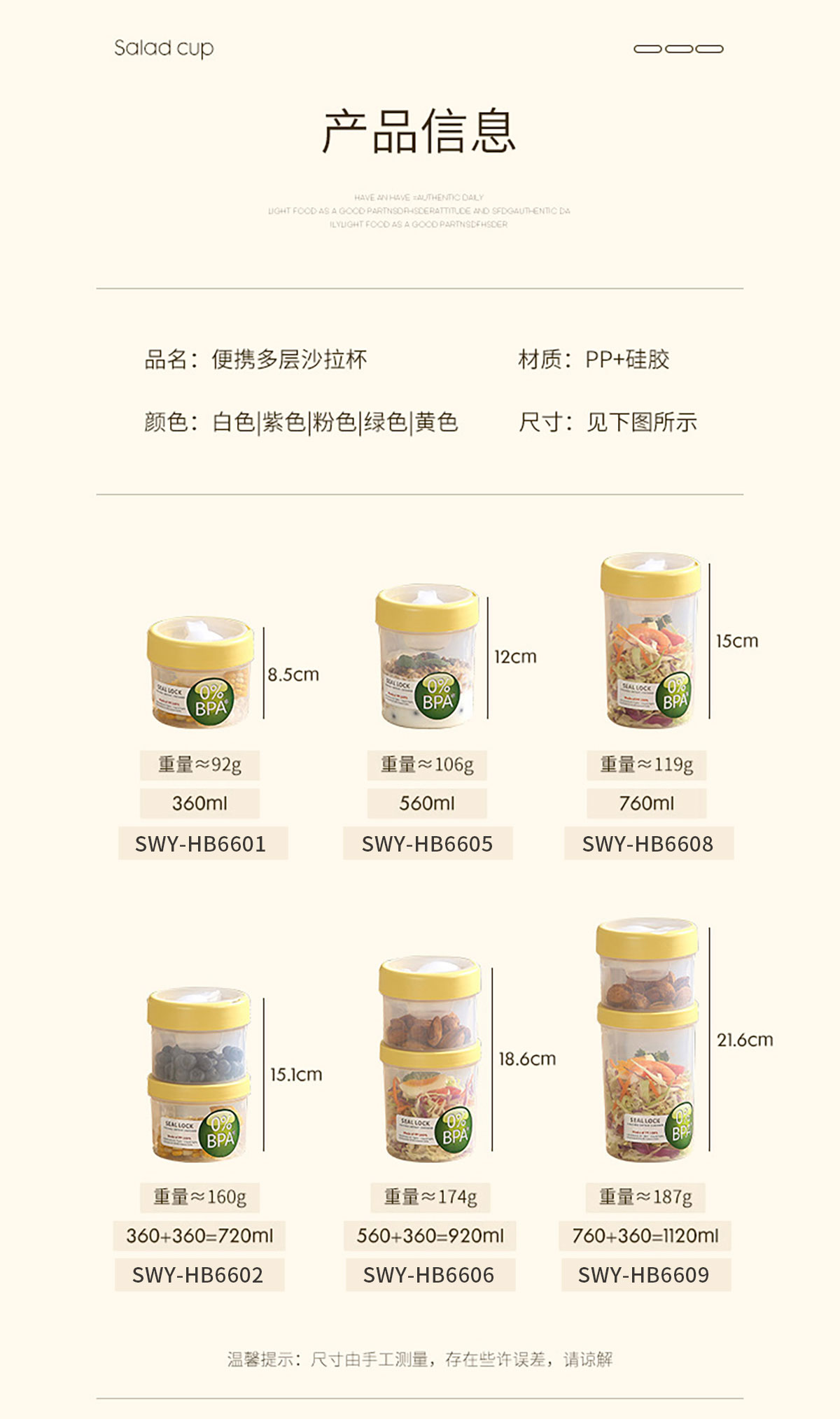 多層沙拉杯360ml/560ml/760ml/720ml/920ml/1120ml
