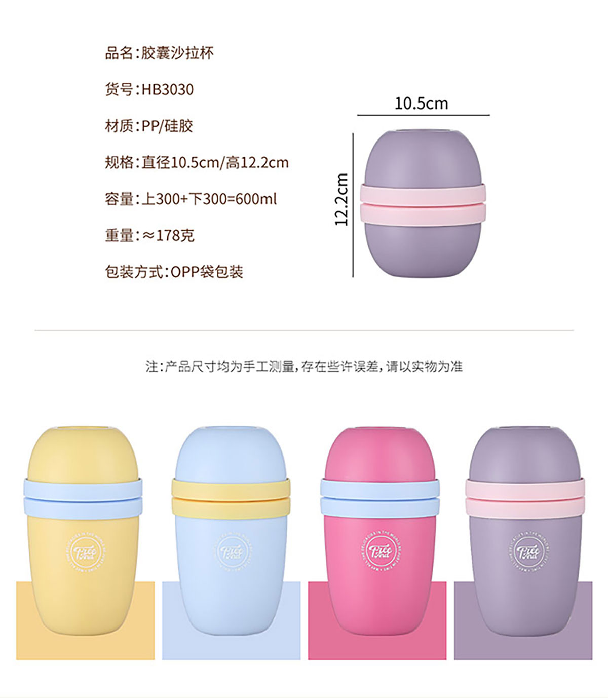 Size: SWY-HB3030:?105*高122mm/上300+下300=600ml