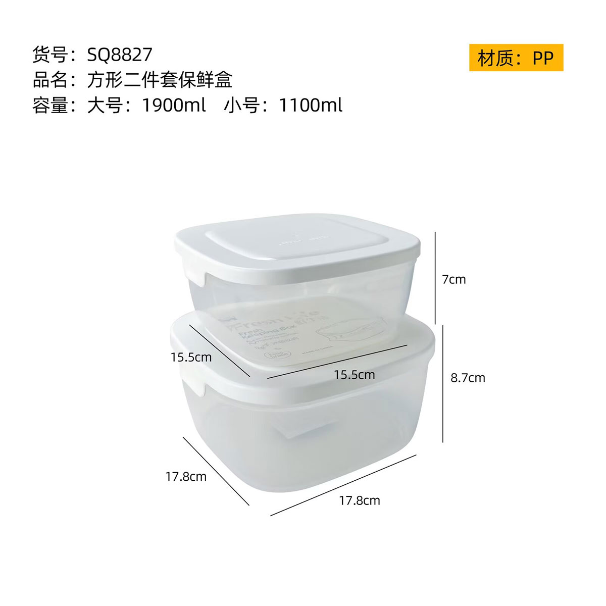 SQ-8827(二件套):中號(hào):155*155*70mm/1100ml 大號(hào):178*178*87mm/1900ml