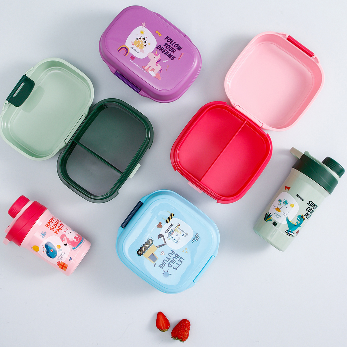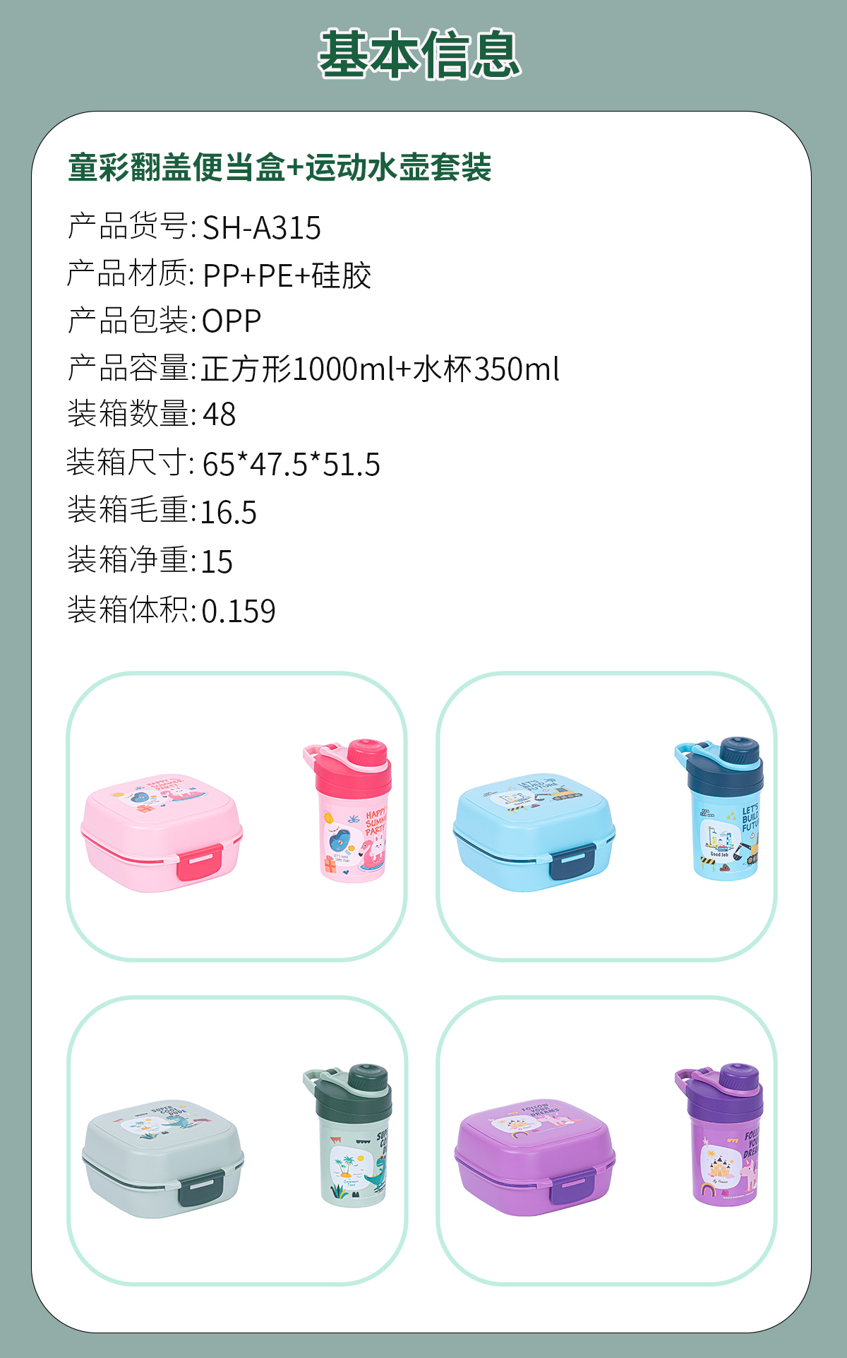 童彩翻蓋便當(dāng)盒+運(yùn)動(dòng)水壺套裝(長(zhǎng)方形/正方形1000ml+水杯350ml)
