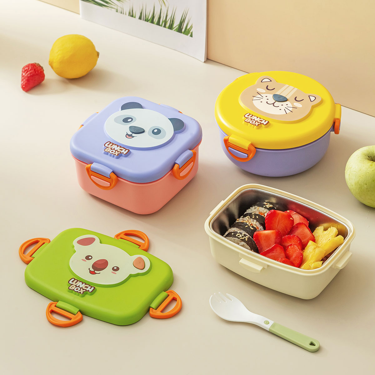 童樂長方形/圓形/方形不銹鋼飯盒