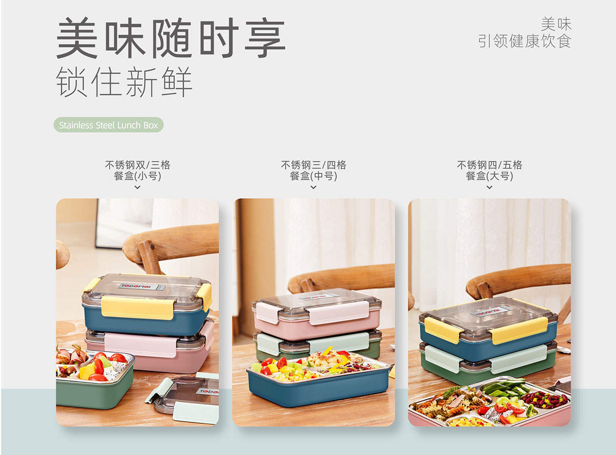 不銹鋼雙格/三格(小號(hào))三格/四格(中號(hào))四格/五格(大號(hào))餐盒(20年色款)