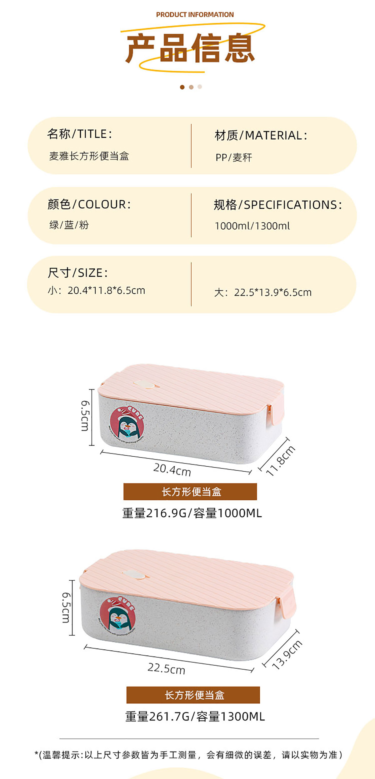麥雅長方形便當盒1000ml/1300ml