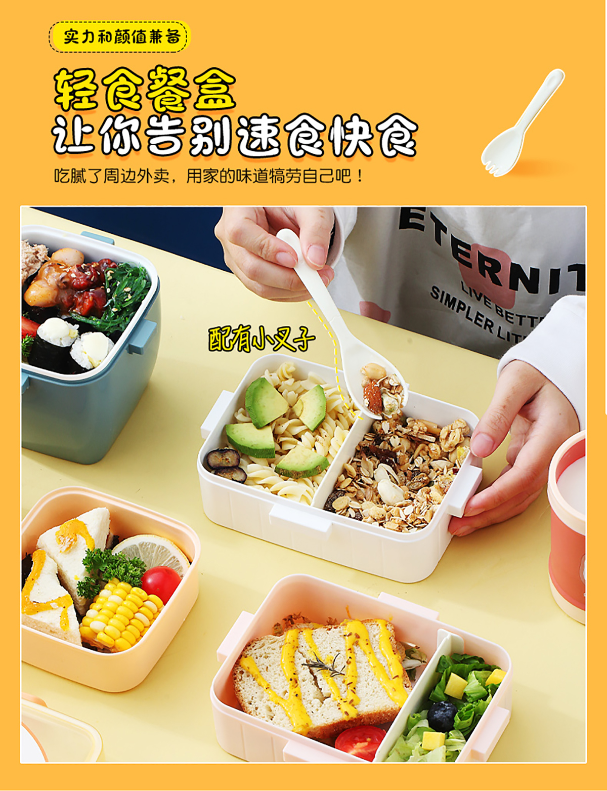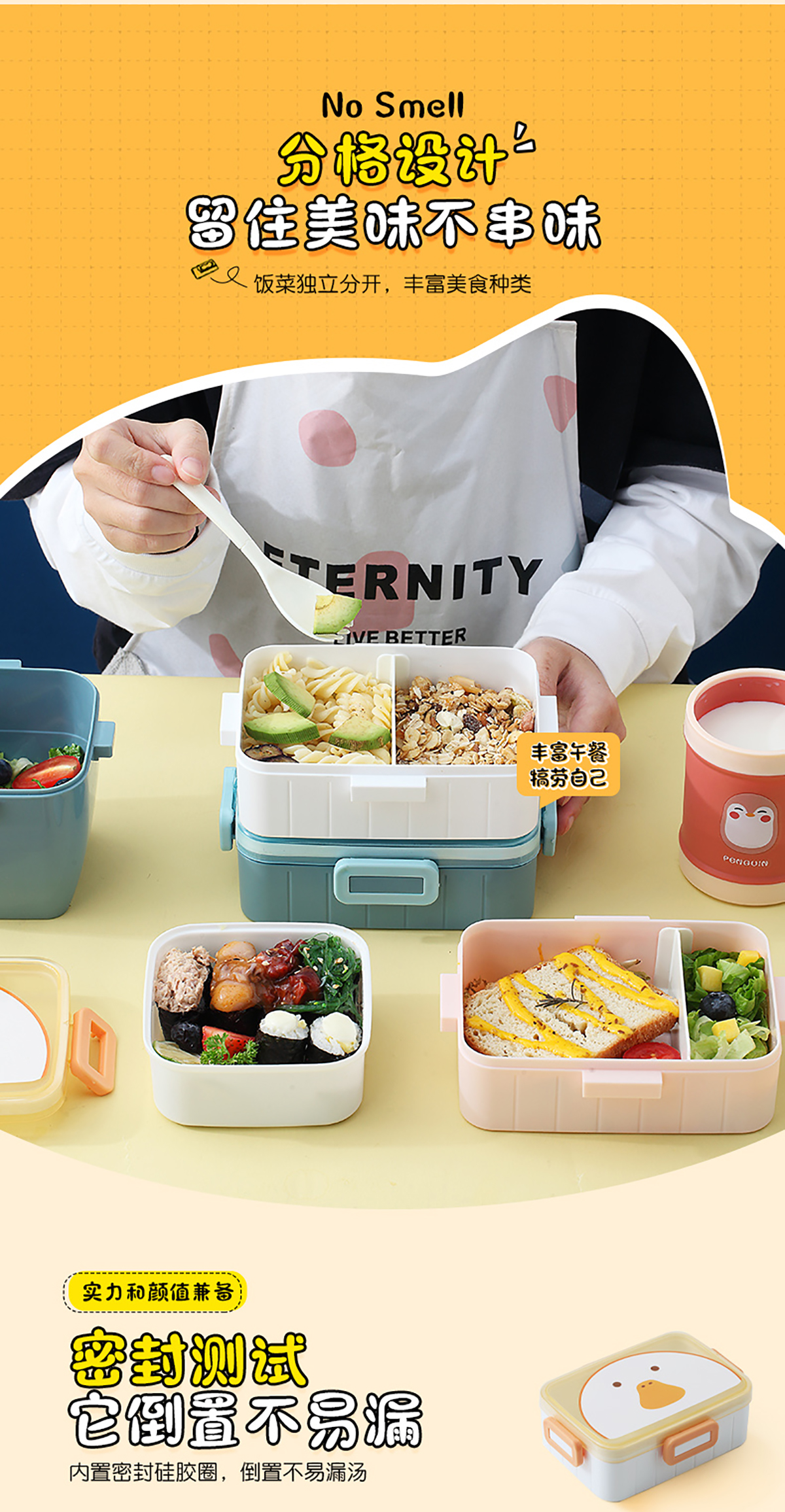 卡通方扣分格飯盒600ml