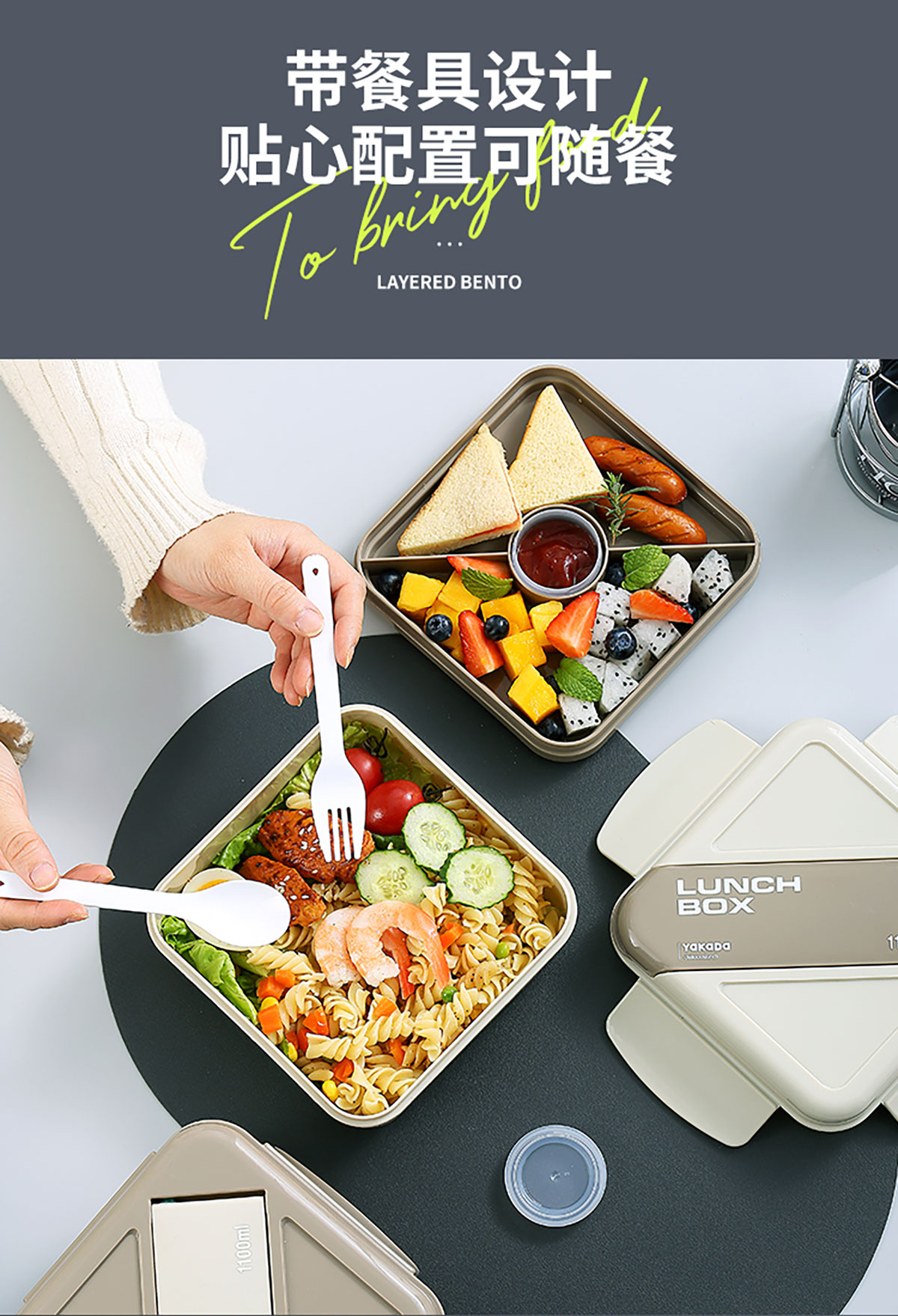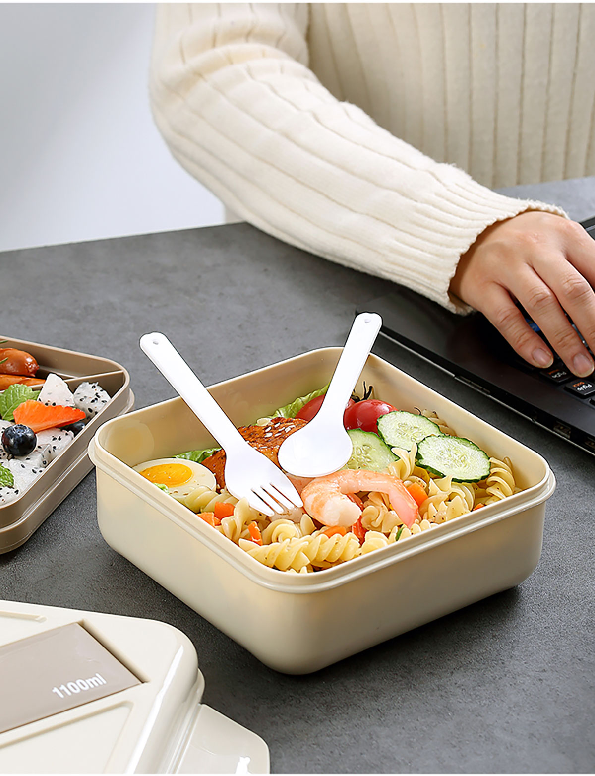 正方雙層沙拉盒1100ml