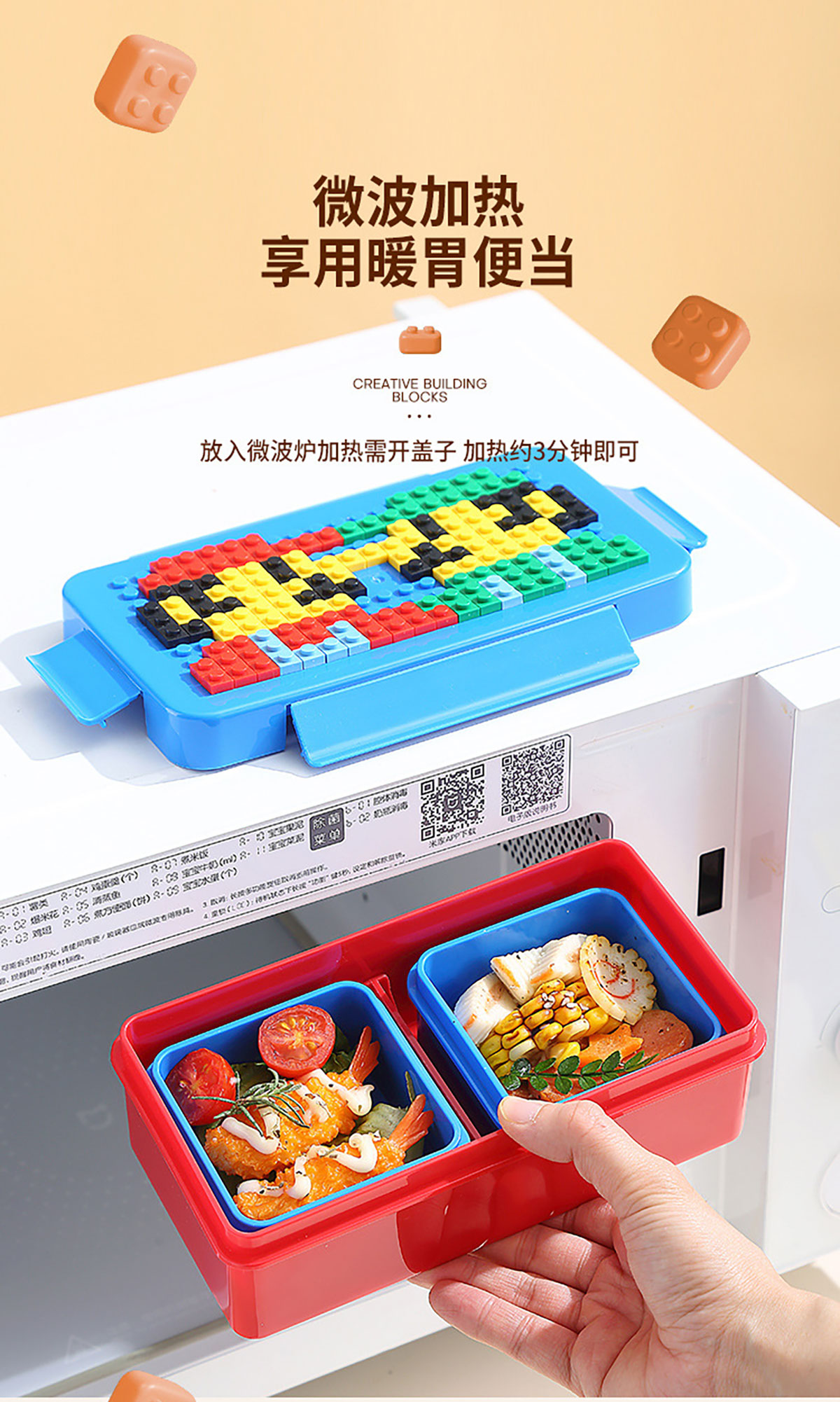 小點(diǎn)積木飯盒(配兩個(gè)分裝盒)1150ml