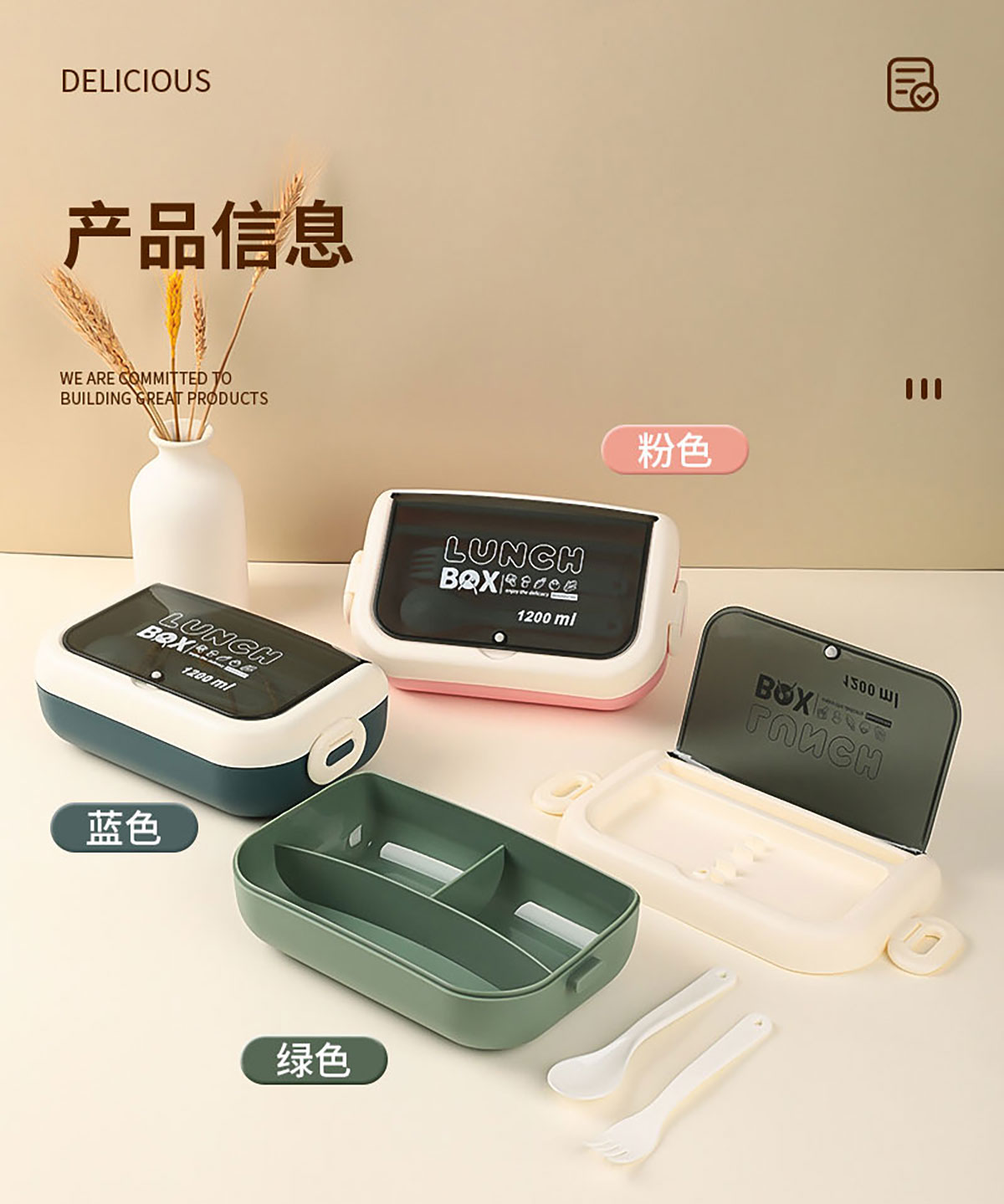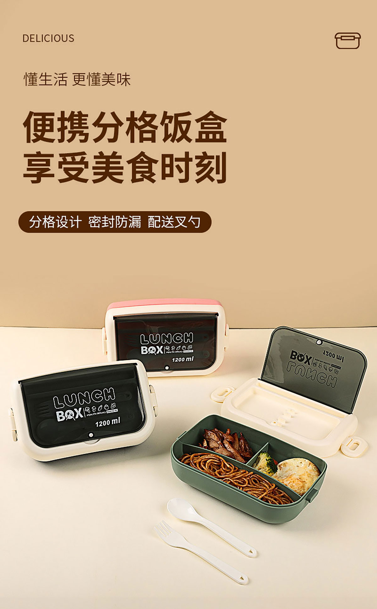逸品便當(dāng)盒1200ml叉勺