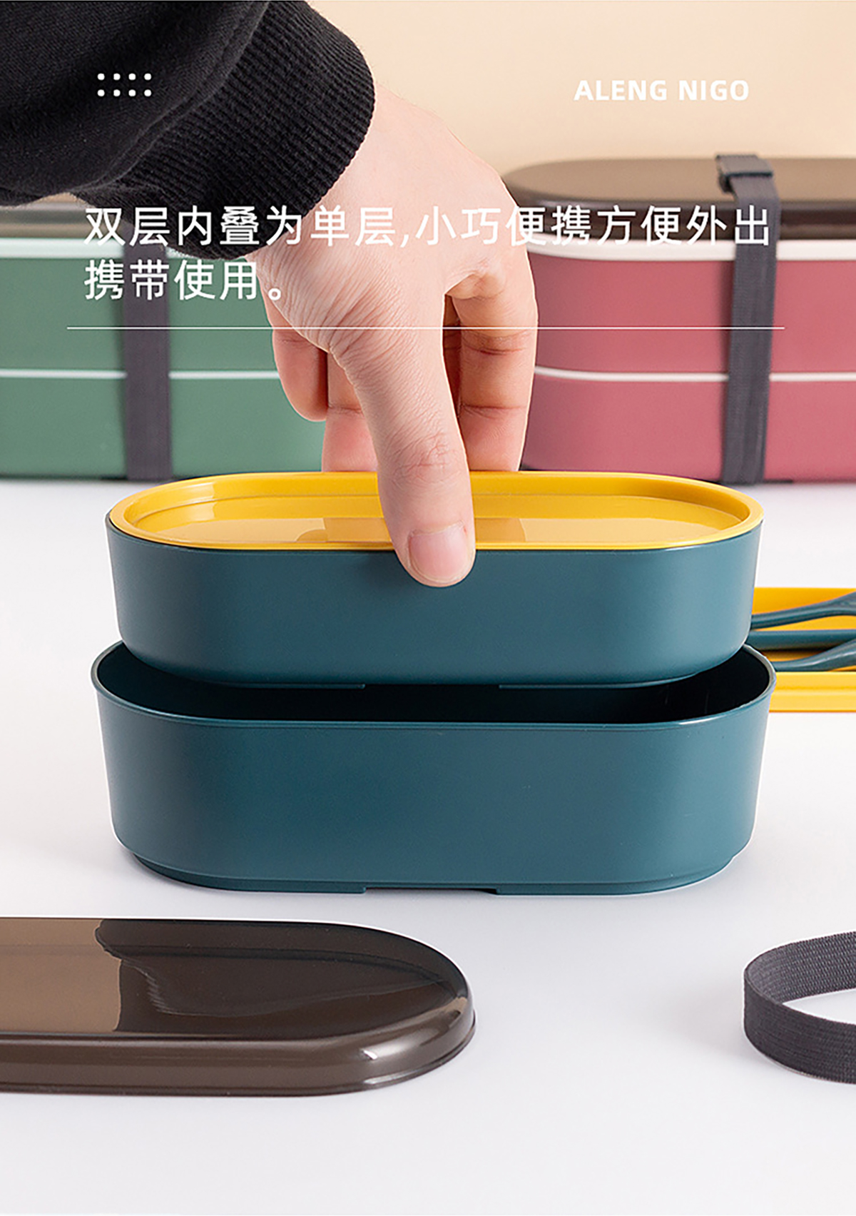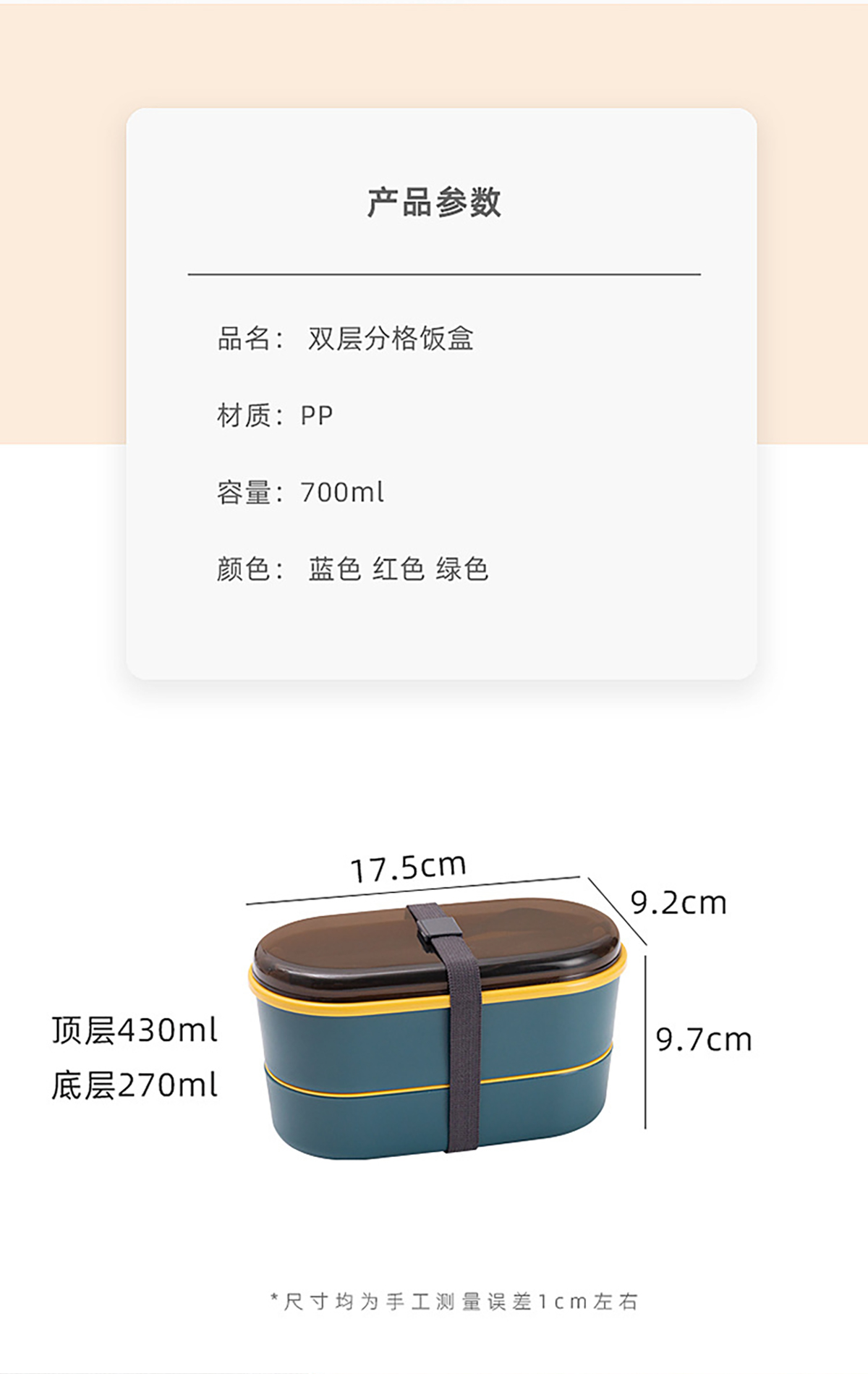 創(chuàng)意單雙層飯盒700ml(上層430ml+下層270ml)