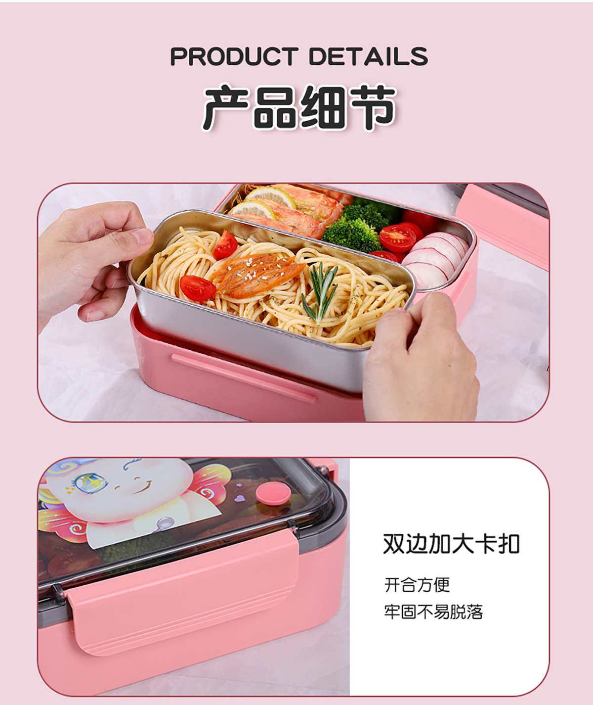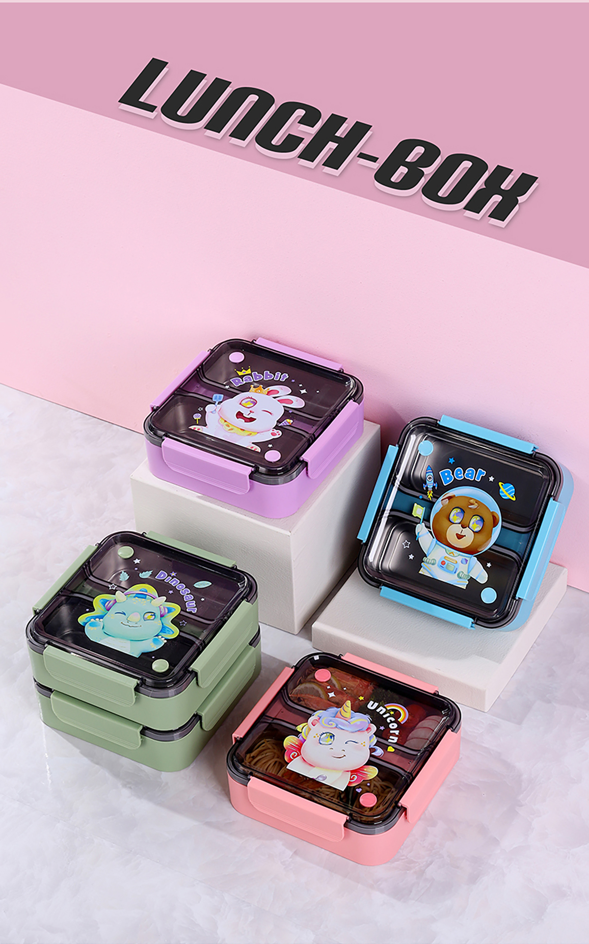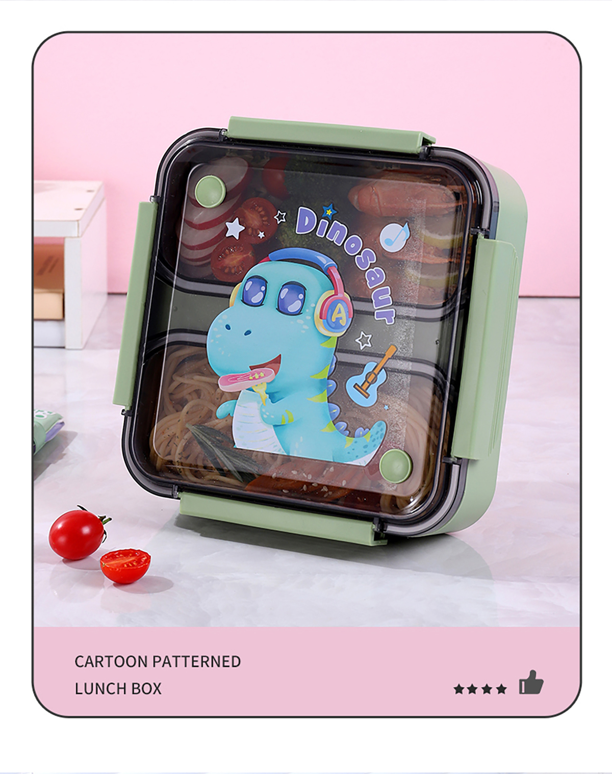 方形雙格卡通防串味密封飯盒