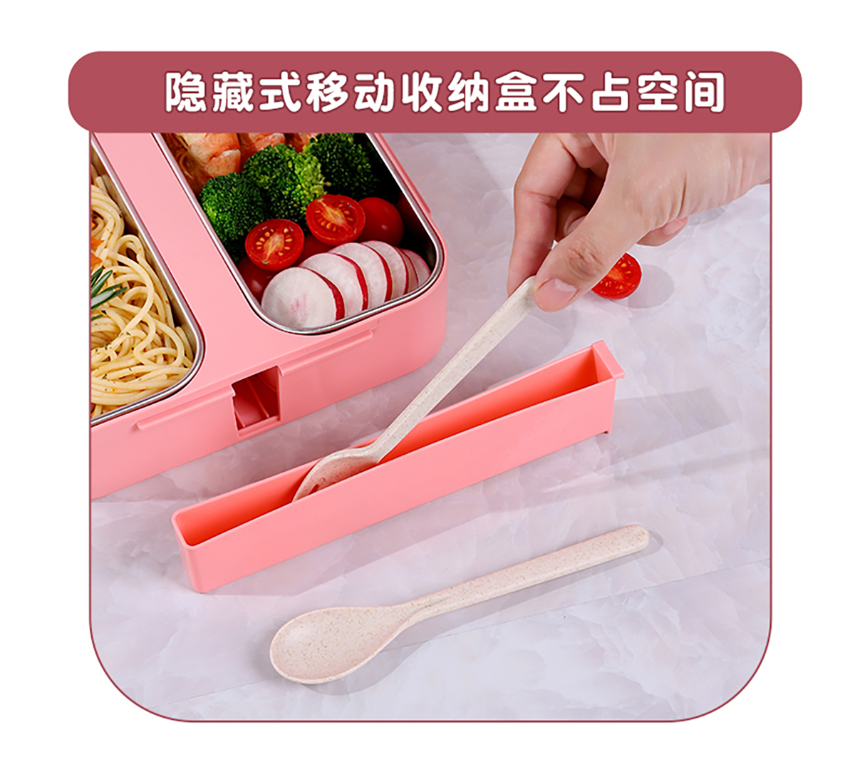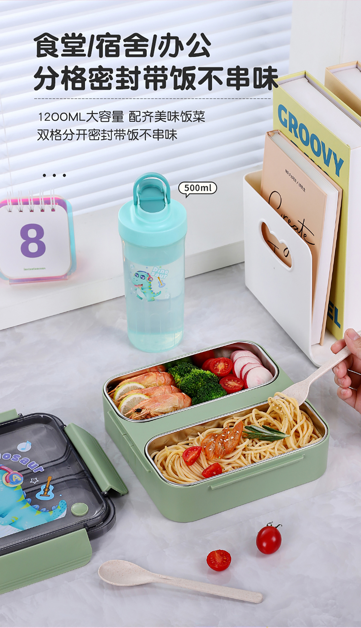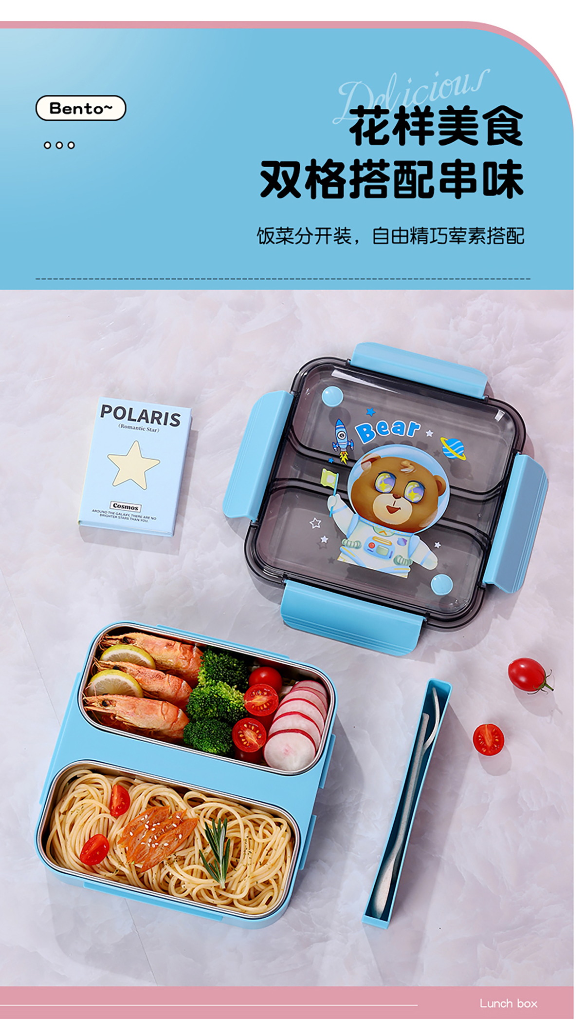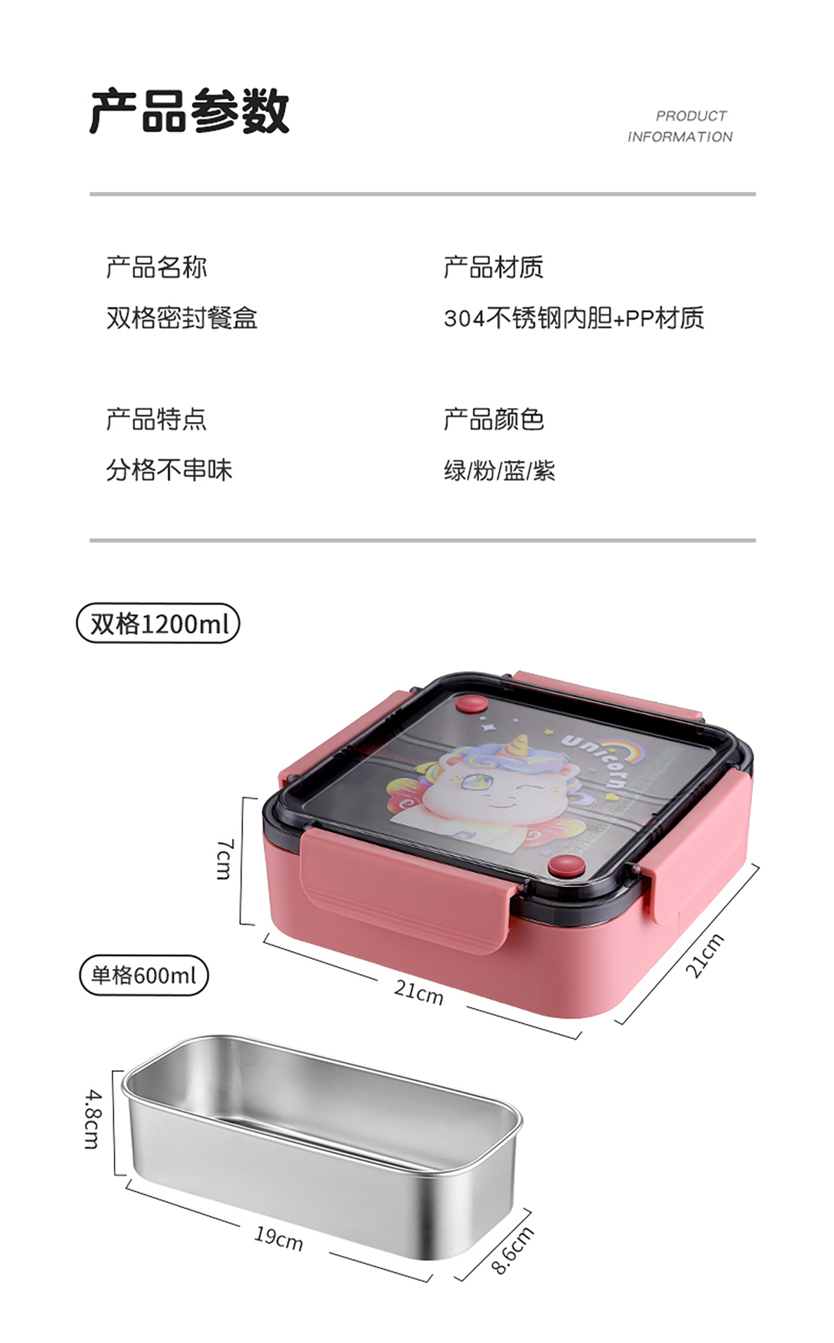 方形雙格卡通防串味密封飯盒