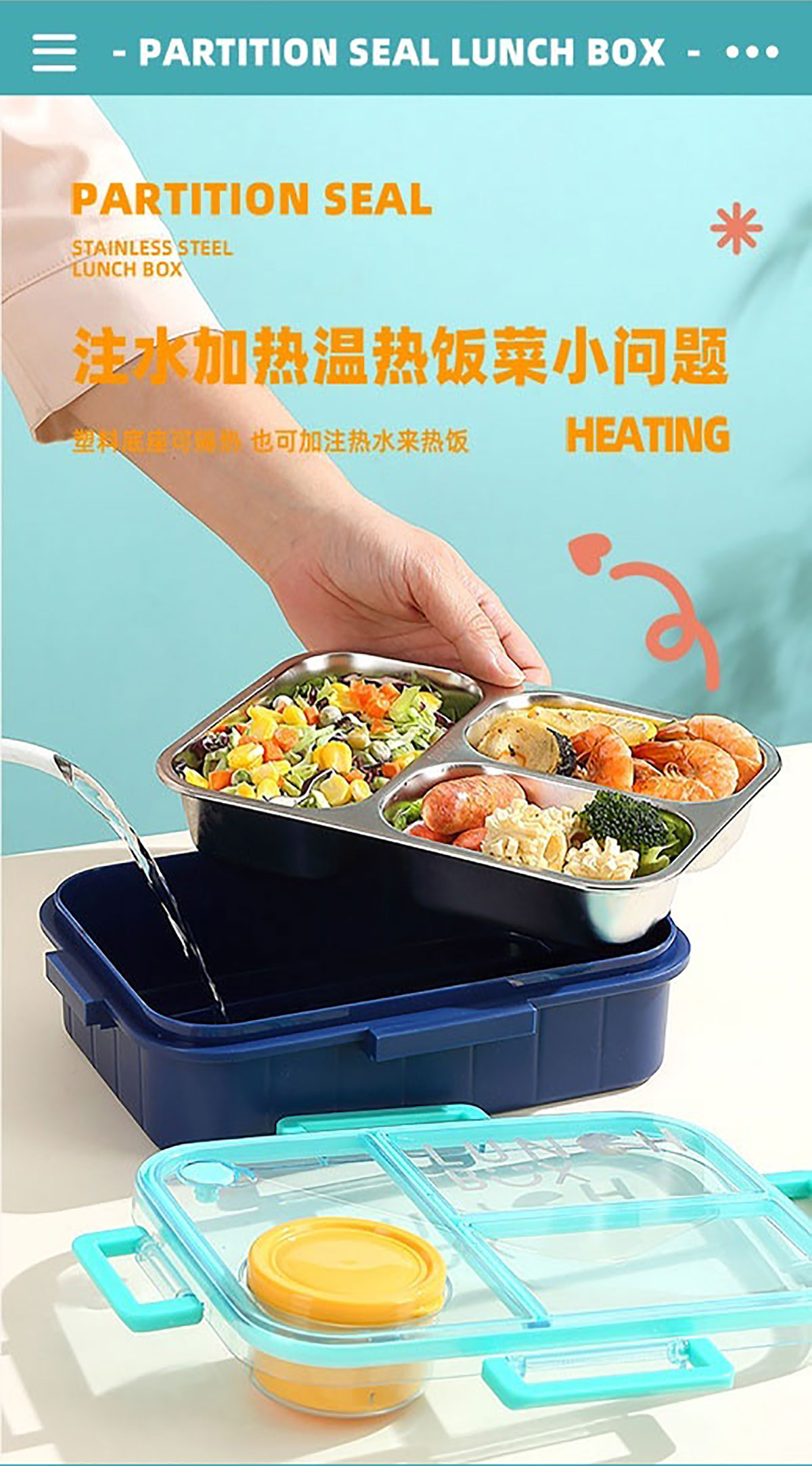 鐳射不串味餐盒(不銹鋼2格800ml/3格750ml+外置醬料杯80ml+不銹鋼勺筷)