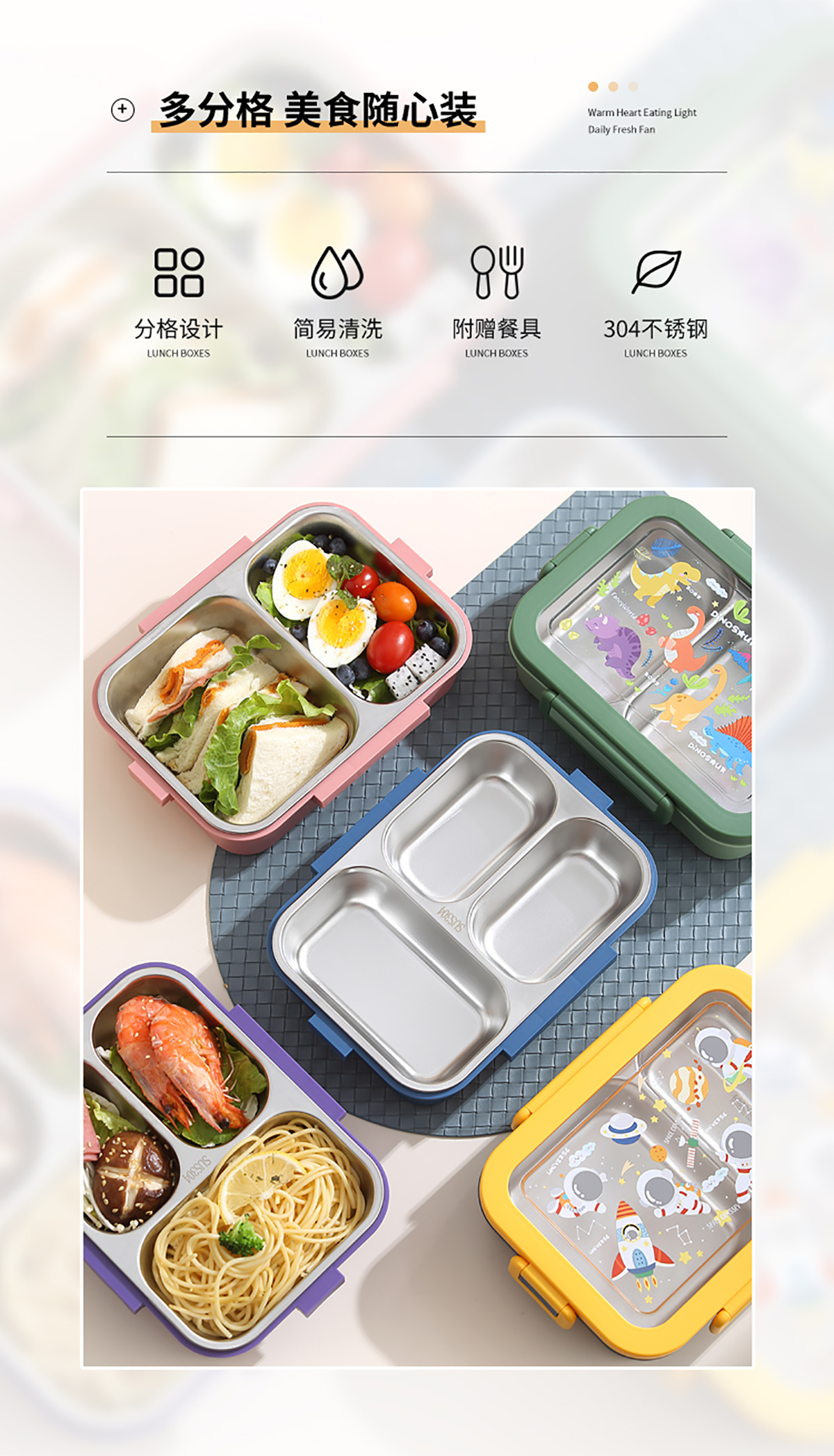 卡通不銹鋼飯盒兩格/三格款