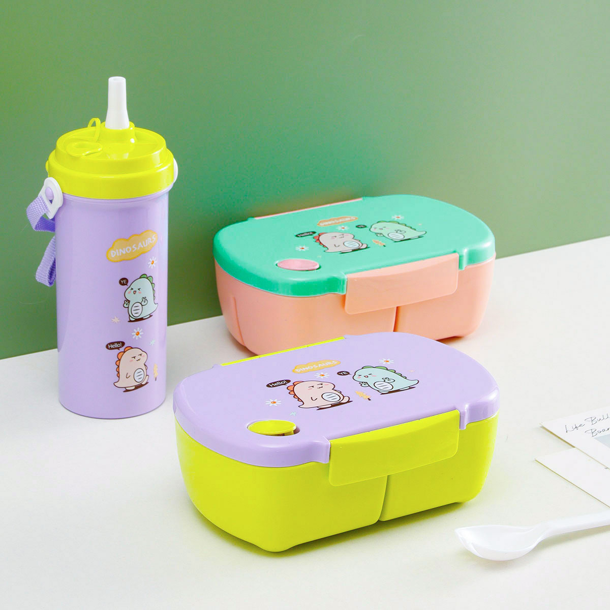 三格長方飯盒+500CC奶茶水壺