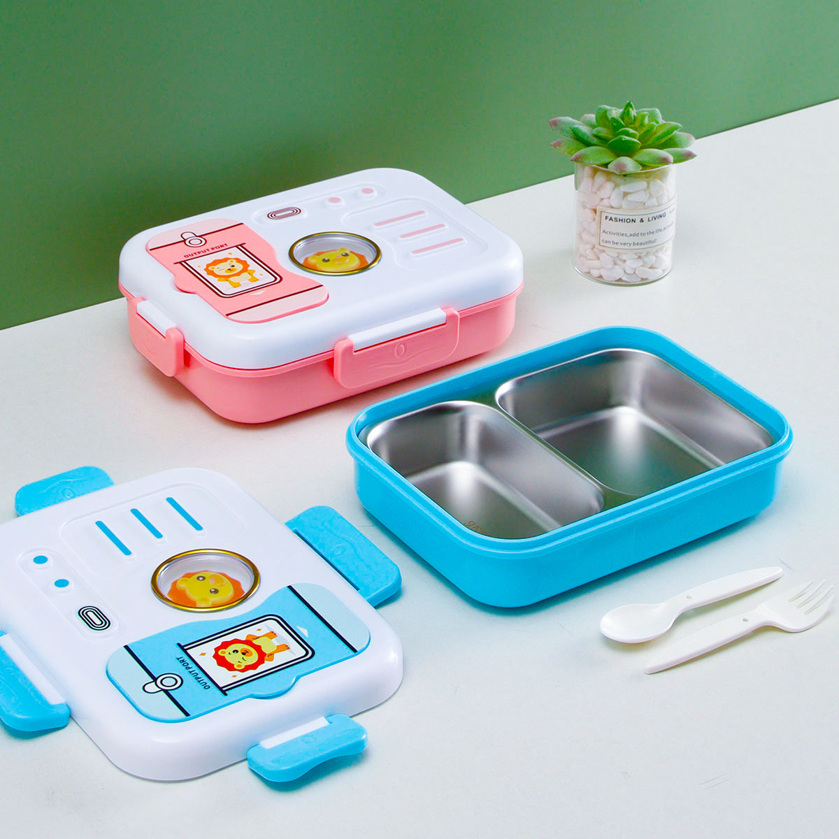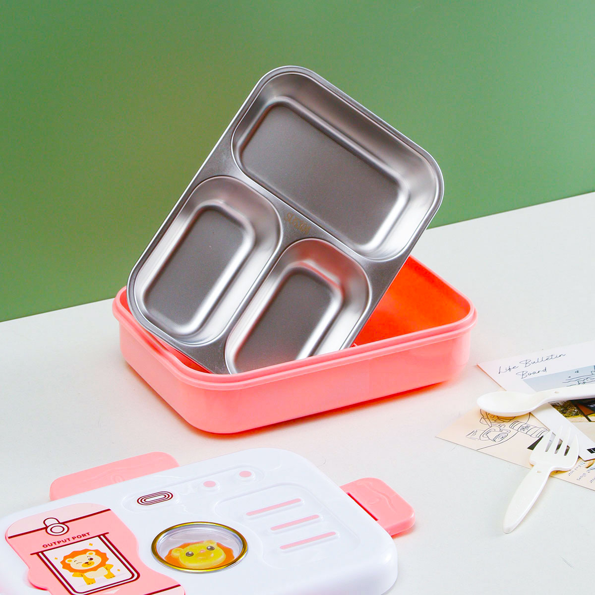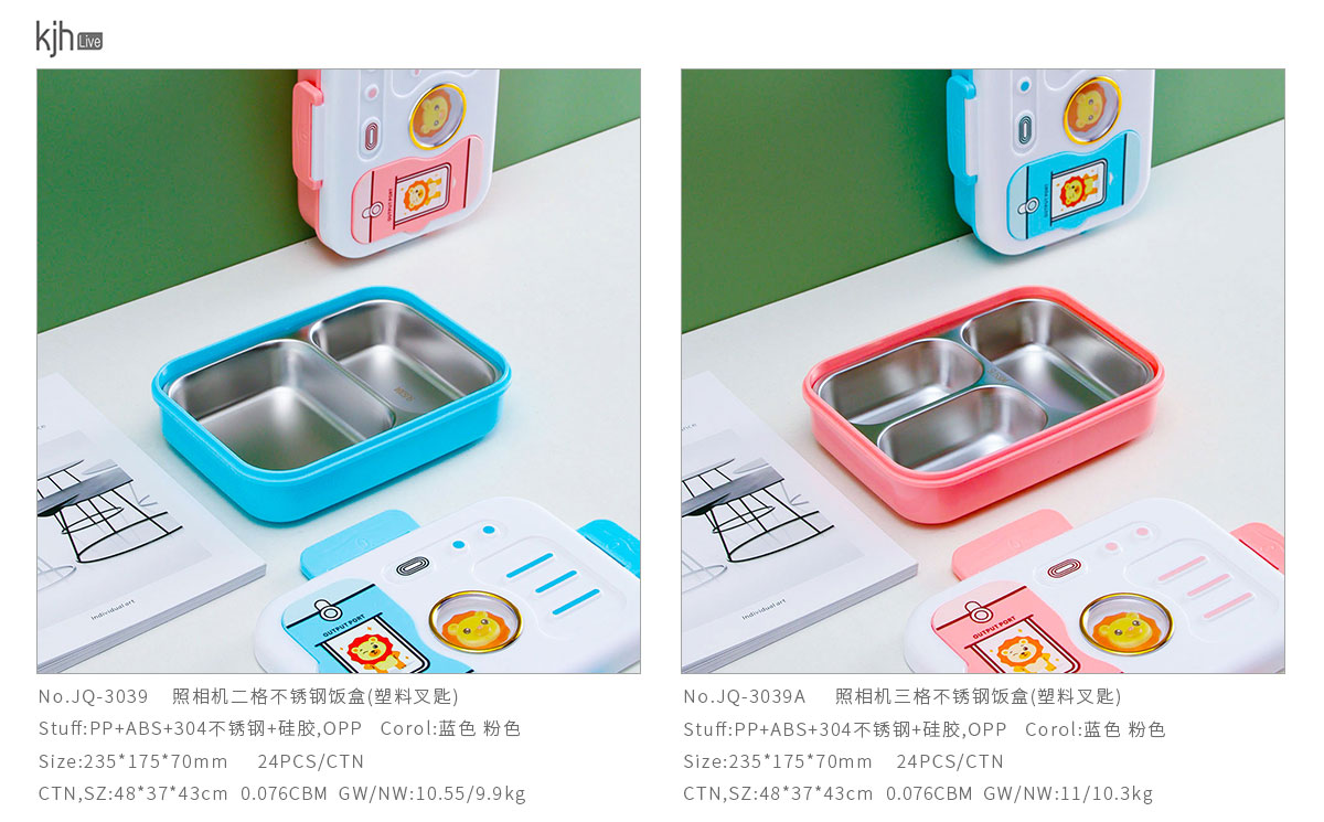 照相機二格/三格不銹鋼飯盒(塑料叉匙)