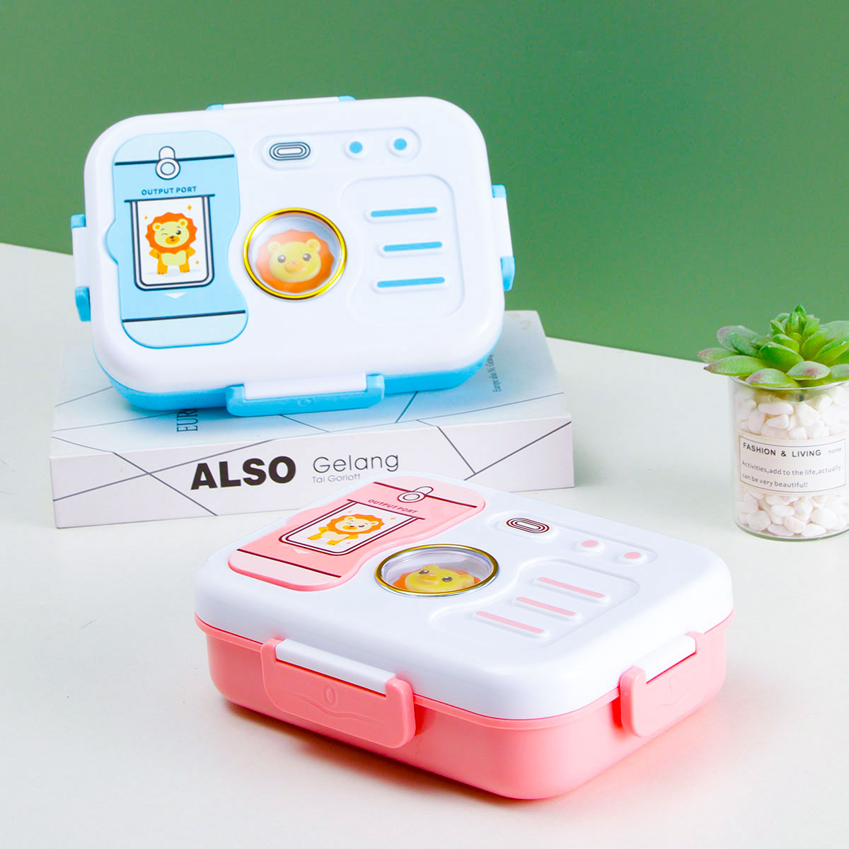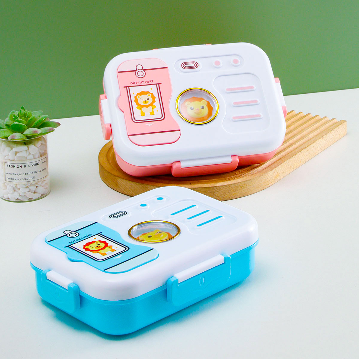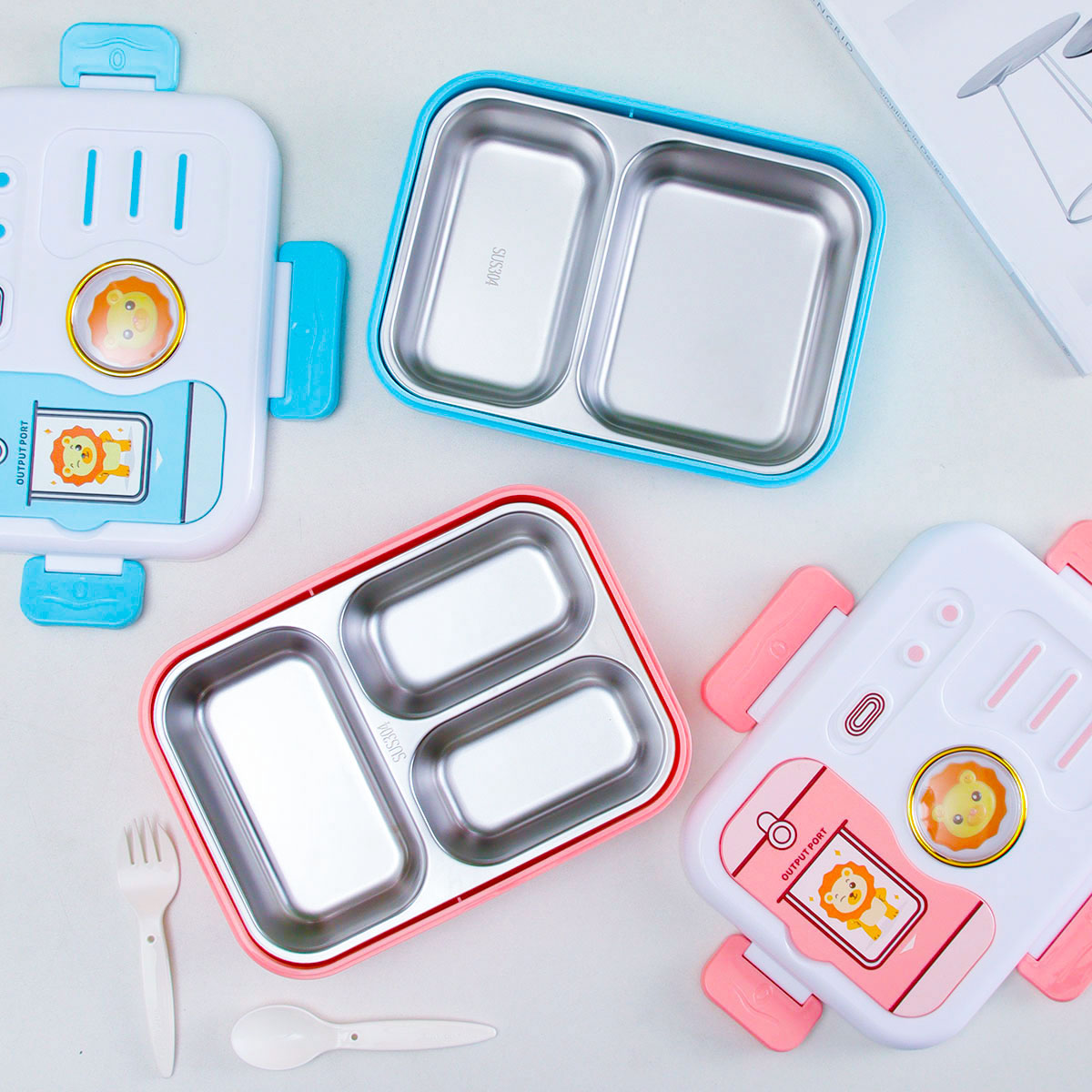照相機二格/三格不銹鋼飯盒(塑料叉匙)