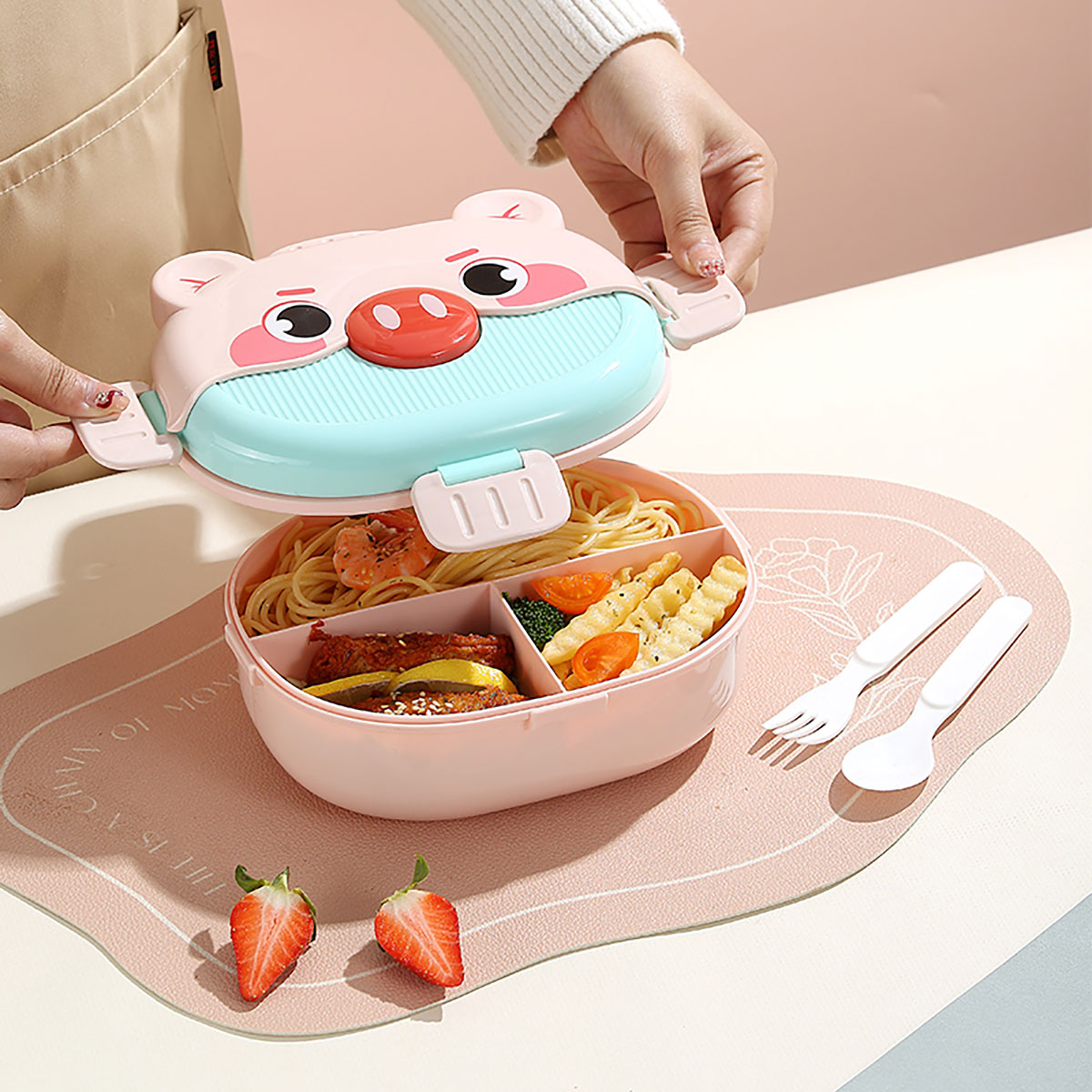卡通新寵分格飯盒1350ml