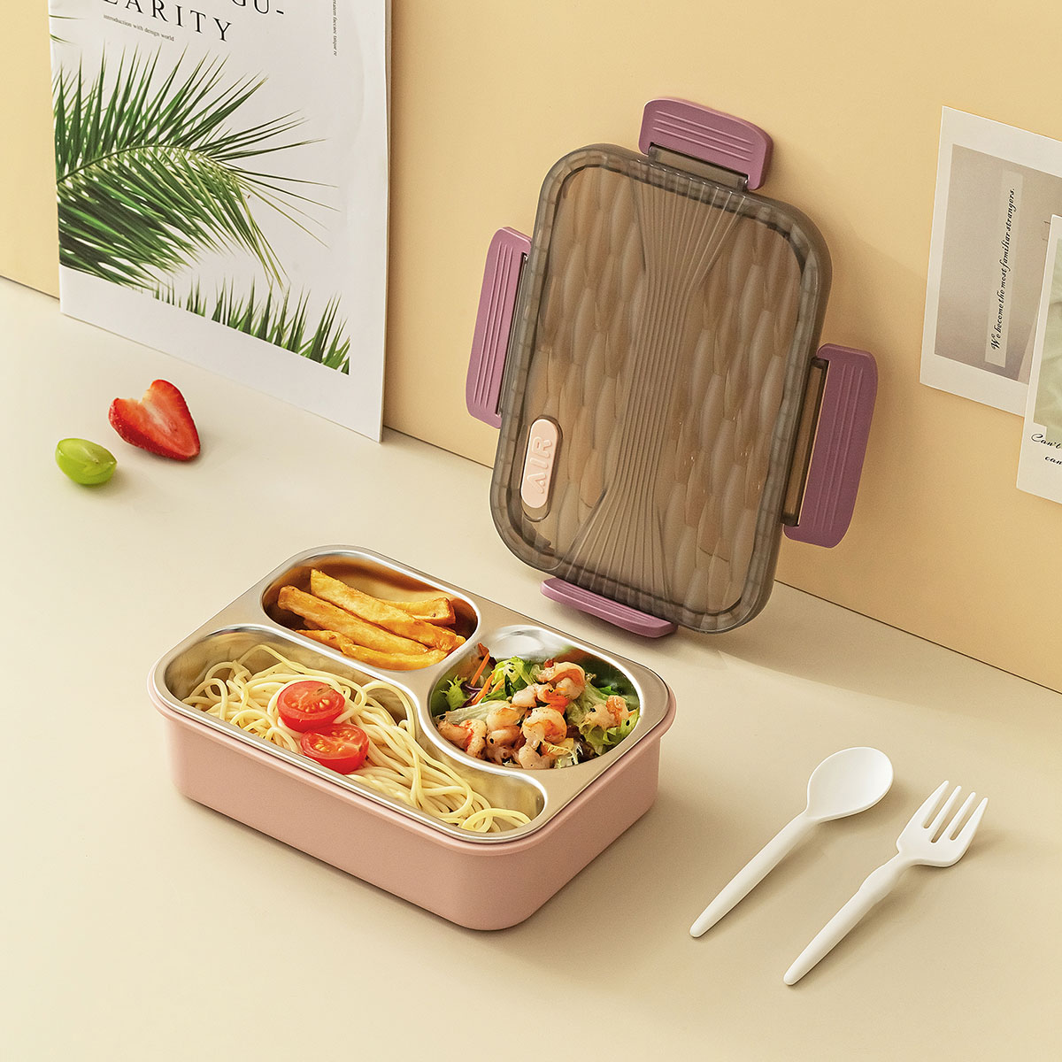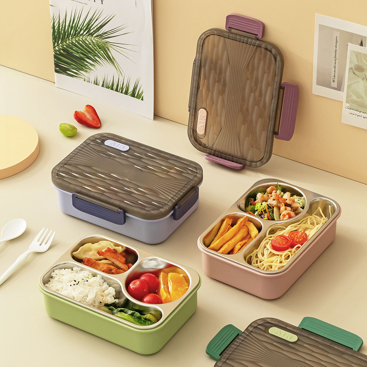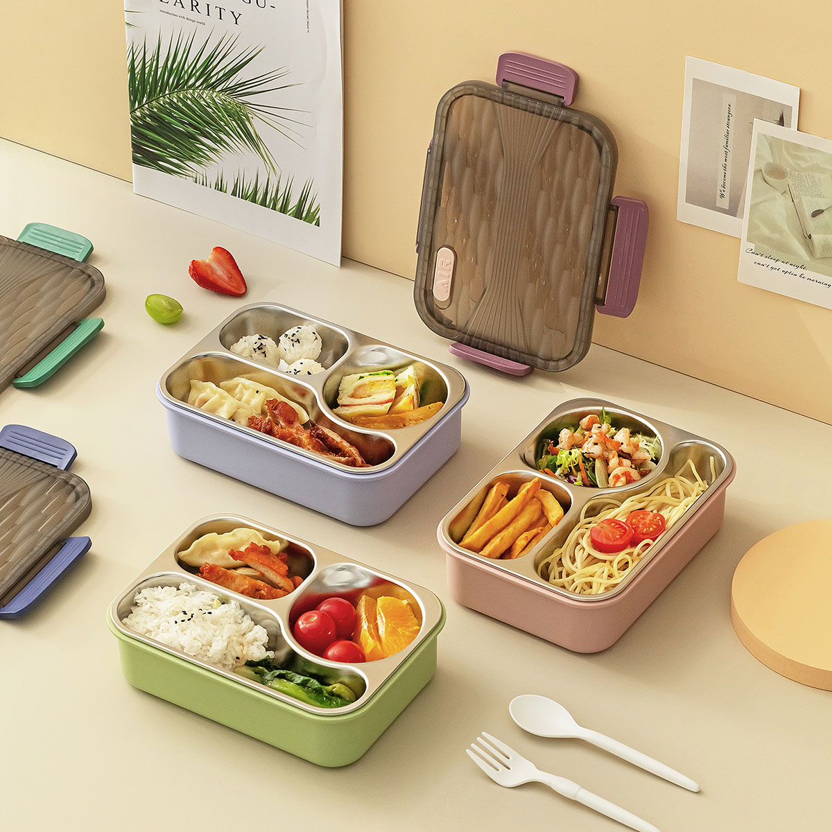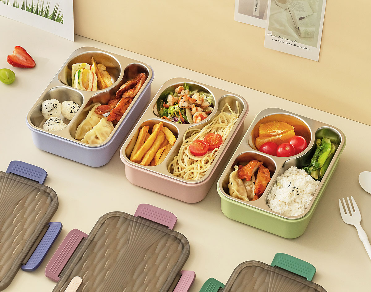 小簡三格不銹鋼飯盒
