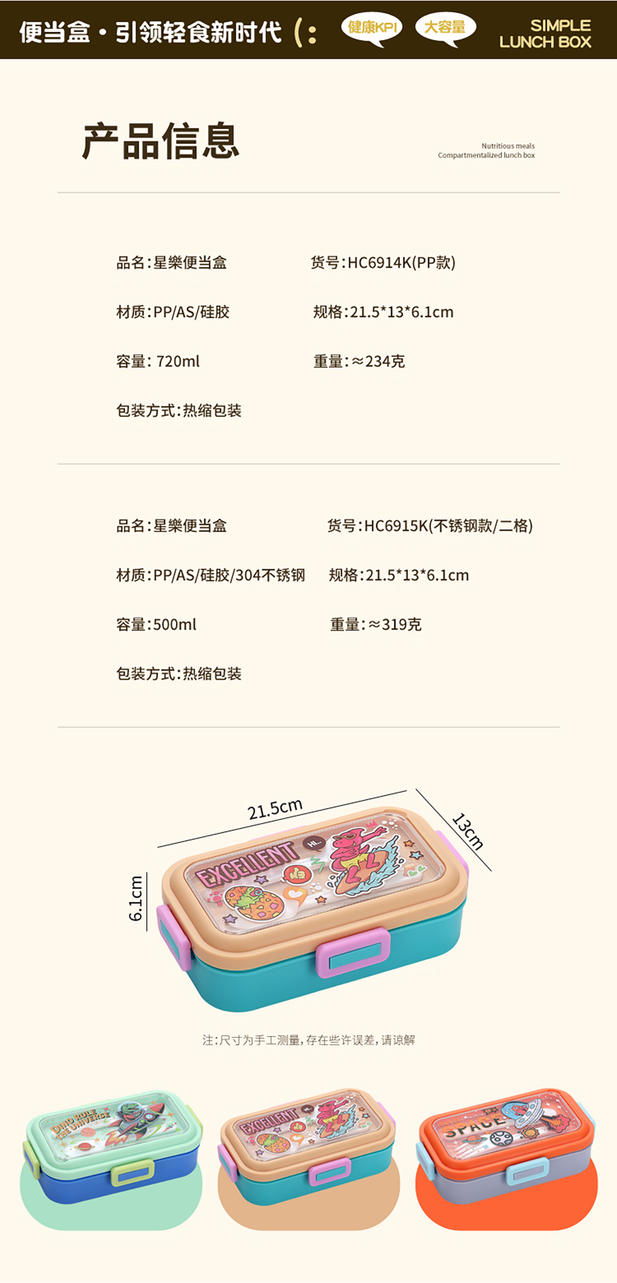 星樂卡通便當(dāng)盒PP款780ml/不銹鋼款500ml