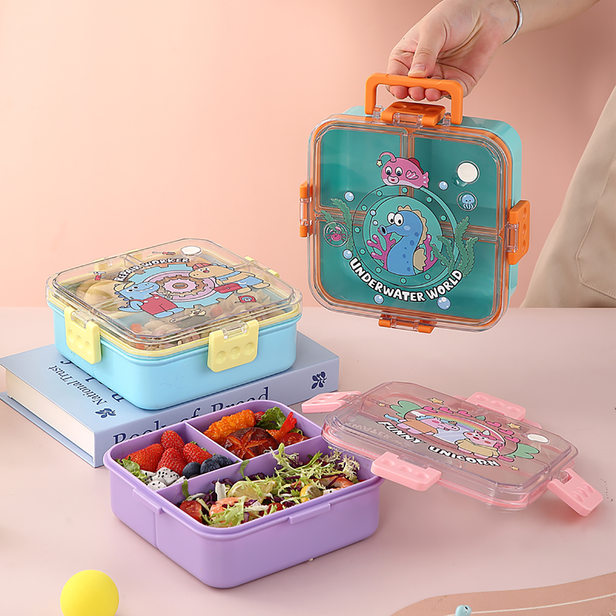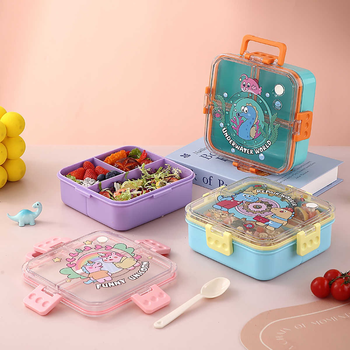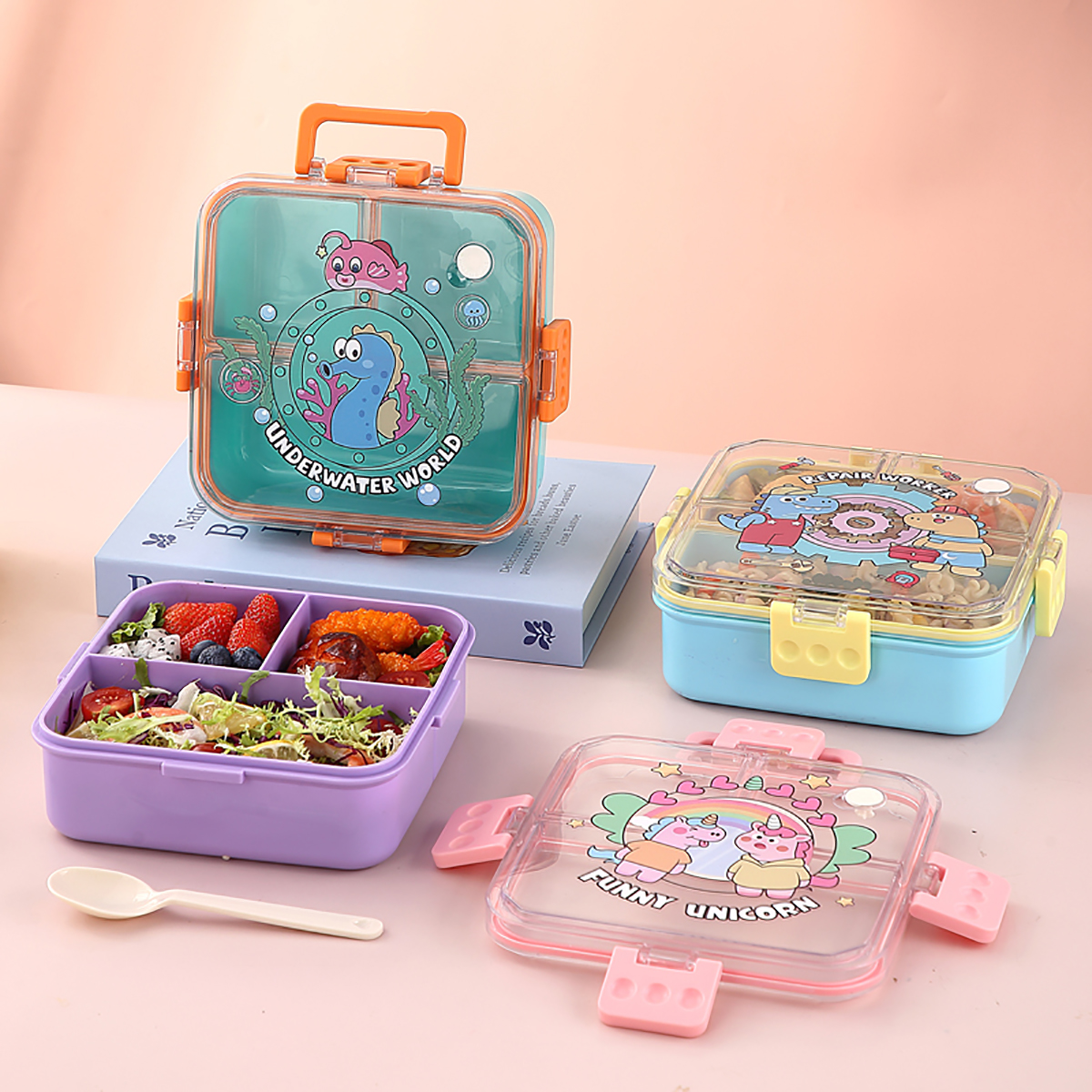 UV手提獨(dú)立密封正方形塑料餐盒1.2L (配PP湯勺)