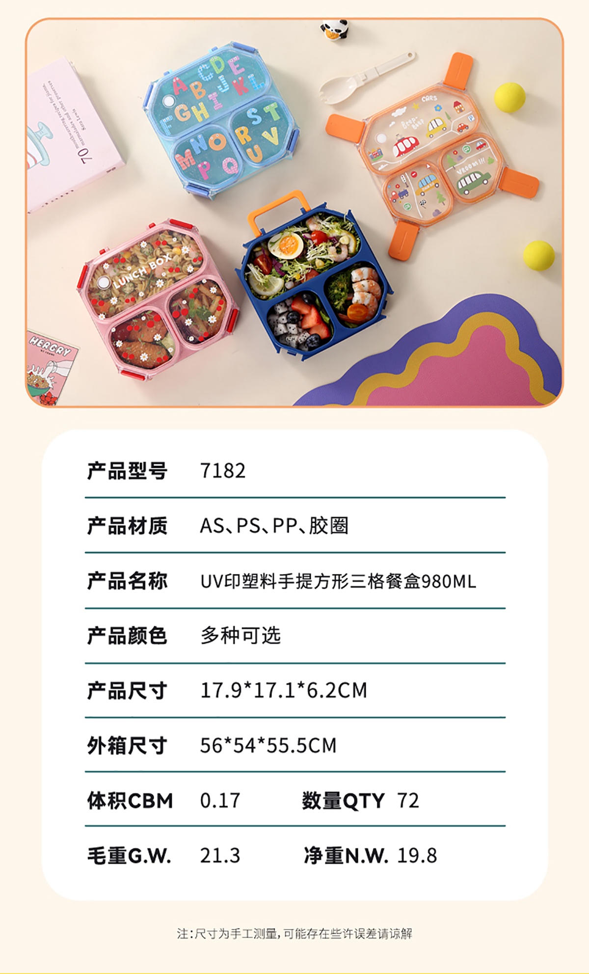 Size: AQX-7181(二格):179*171*62mm/1.05L AQX-7182(三格):179*171*62mm/980ml