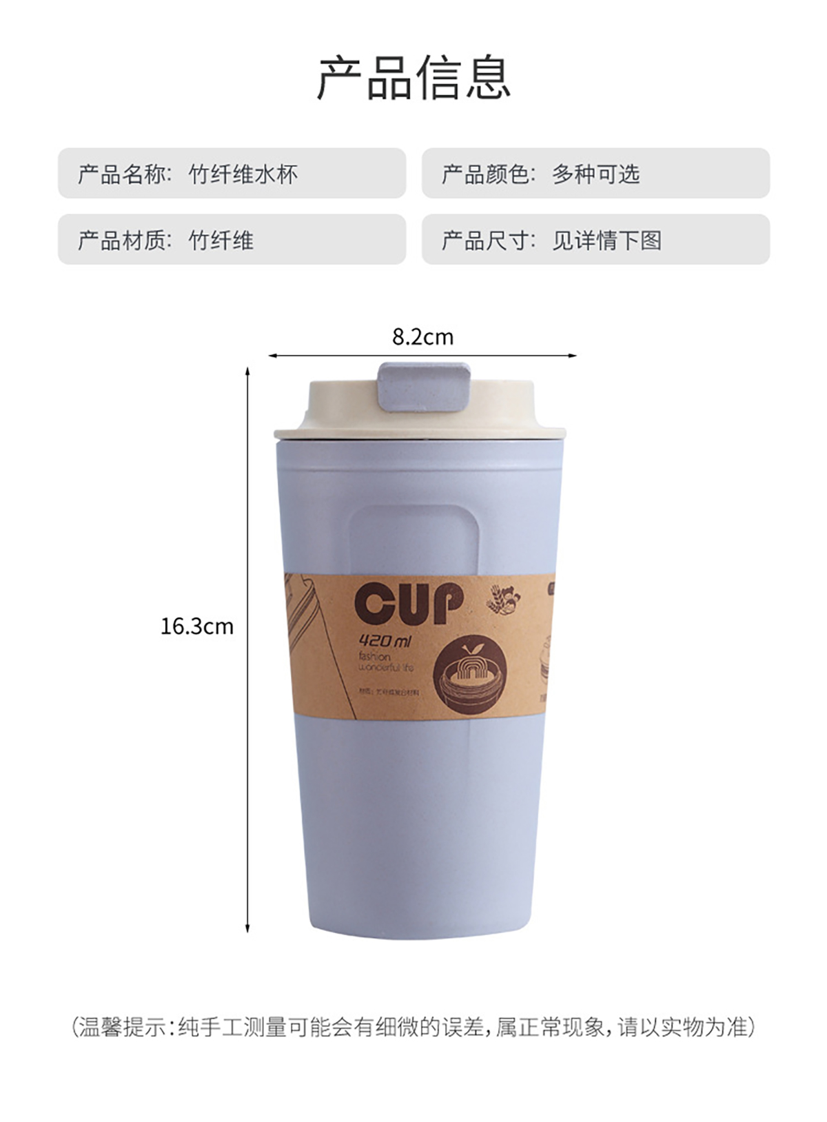 Size: 杯蓋直徑85*杯底直徑65*水杯高度160mm